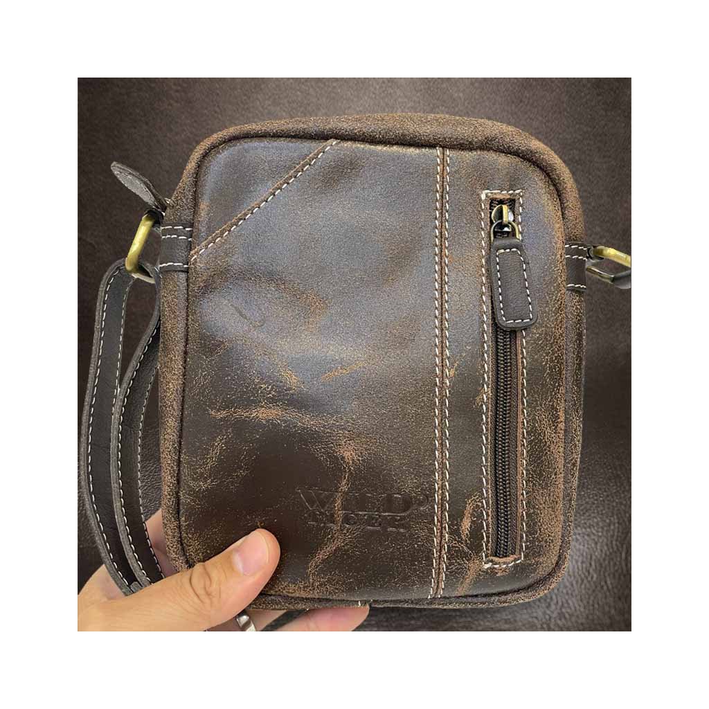 Pánská malá hnědá WILD Leather kožená crossbody messenger taška přes rameno | velikost S malá Bez personalizace - individuální přání řešíme po domluvě.