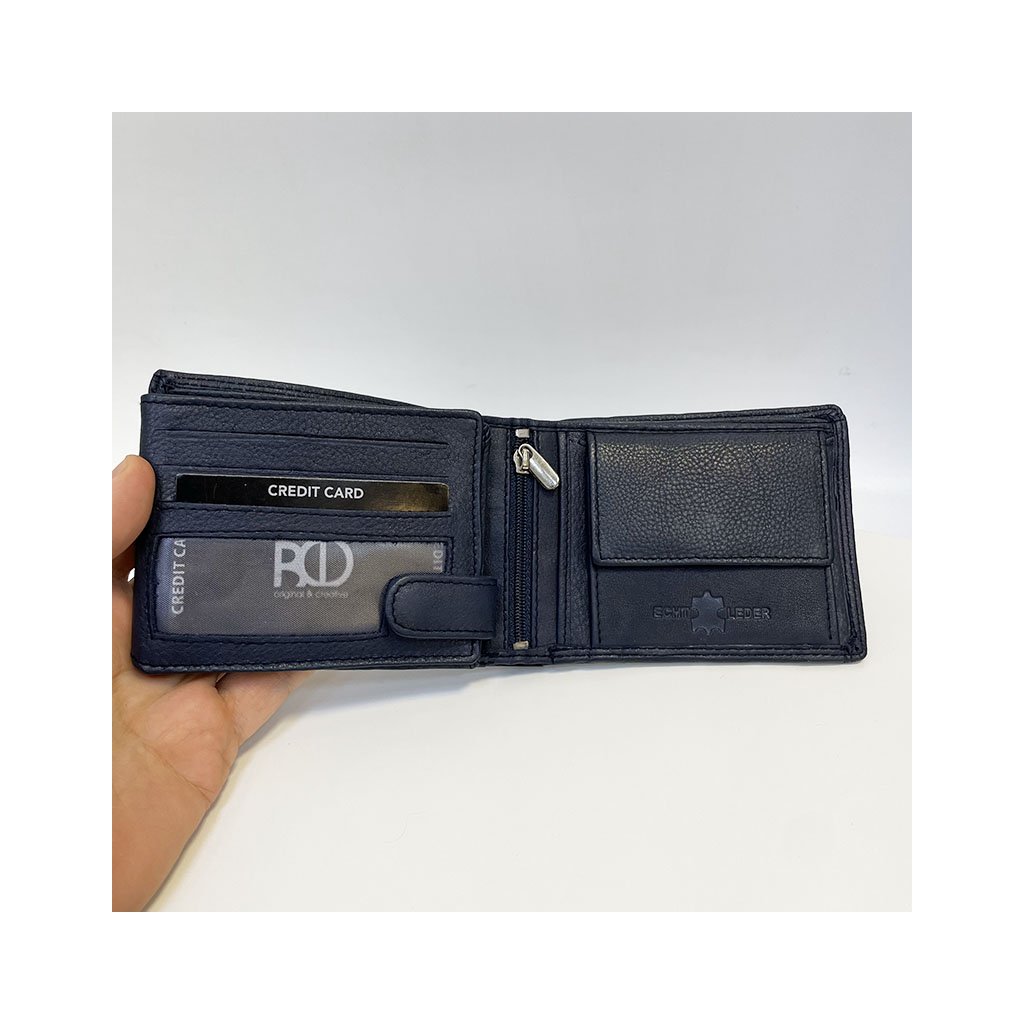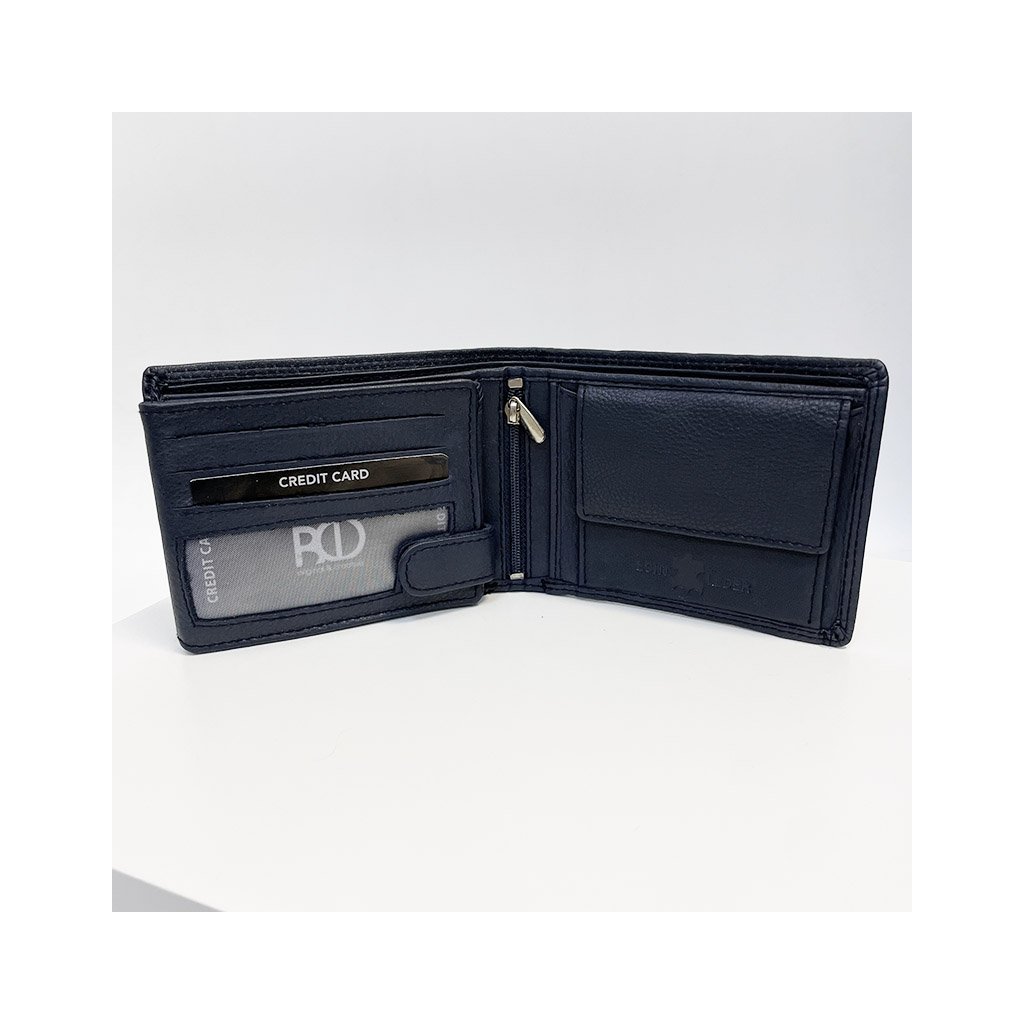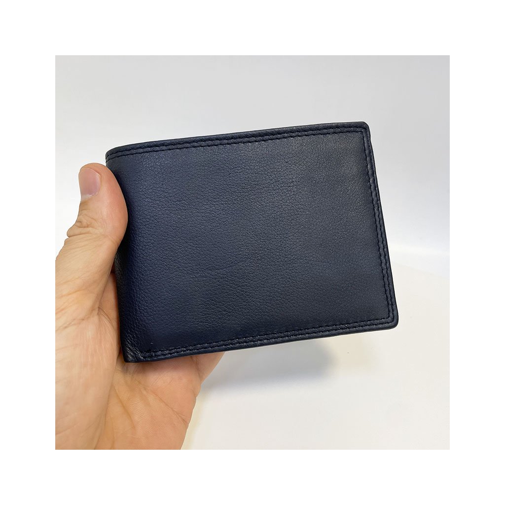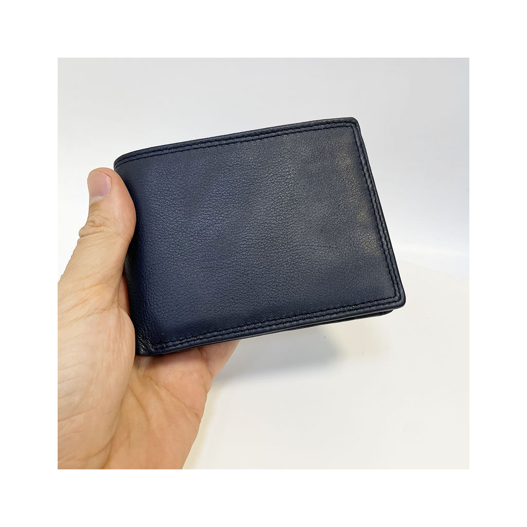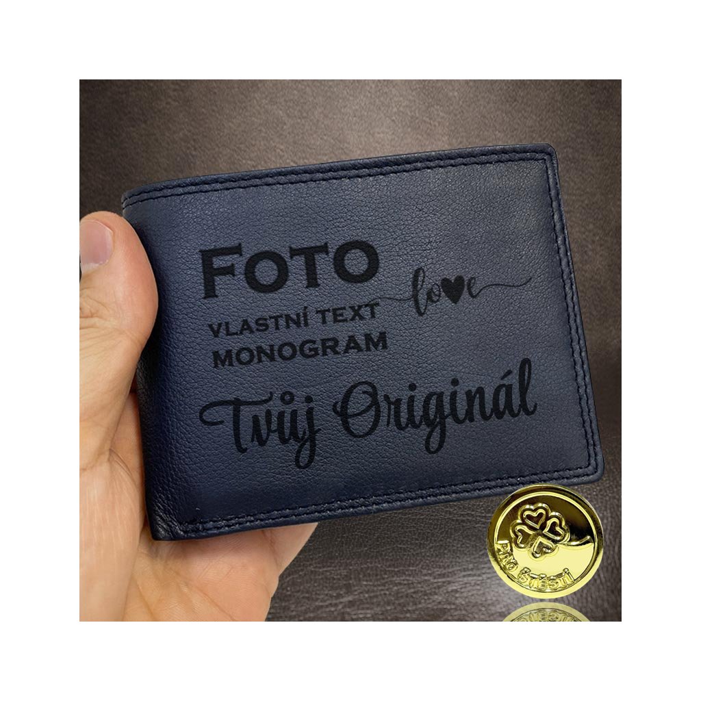 Pánská modrá kožená peněženka BEORIGINAL Leather RFID s vlastním monogramem, textem nebo fotkou + Akce - zlatá mince Pro štěstí ZDARMA