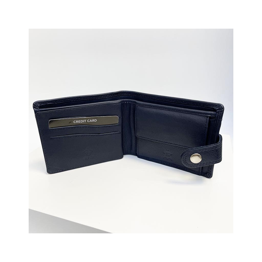 Pánská modrá kožená peněženka RFID BEORIGINAL Leather s monogramem (ražba) + Akce - zlatá mince Pro štěstí ZDARMA