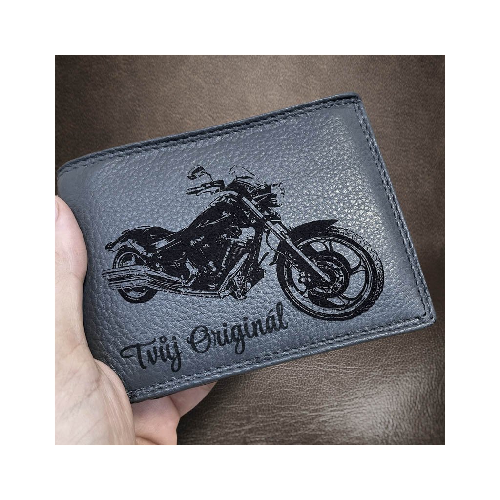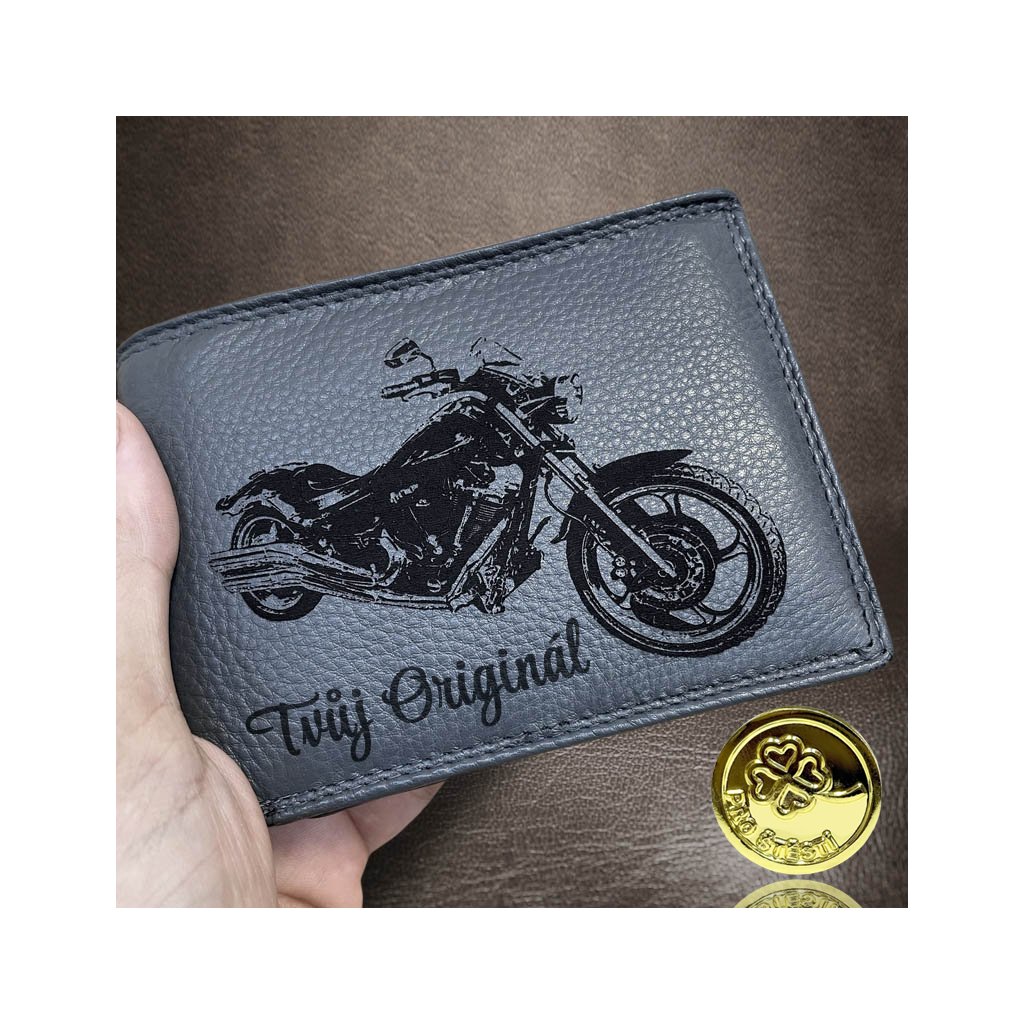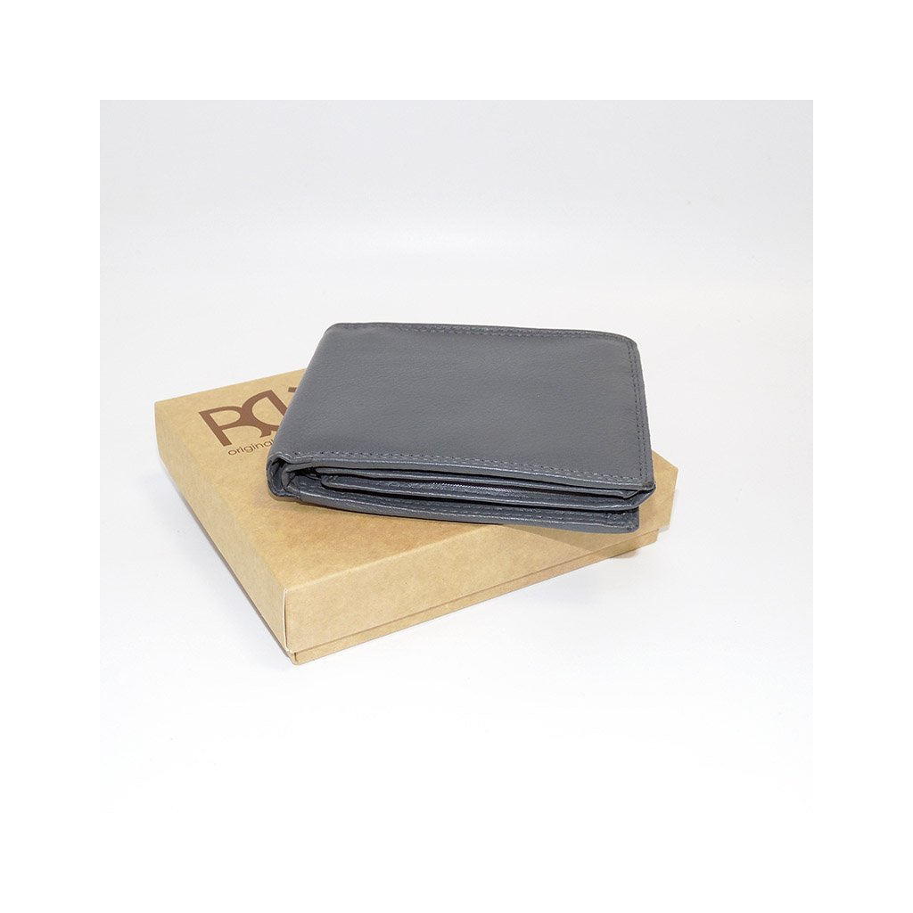 Pánská šedá kožená peněženka BEORIGINAL Leather RFID s vlastním monogramem, textem nebo fotkou + Akce - zlatá mince Pro štěstí ZDARMA