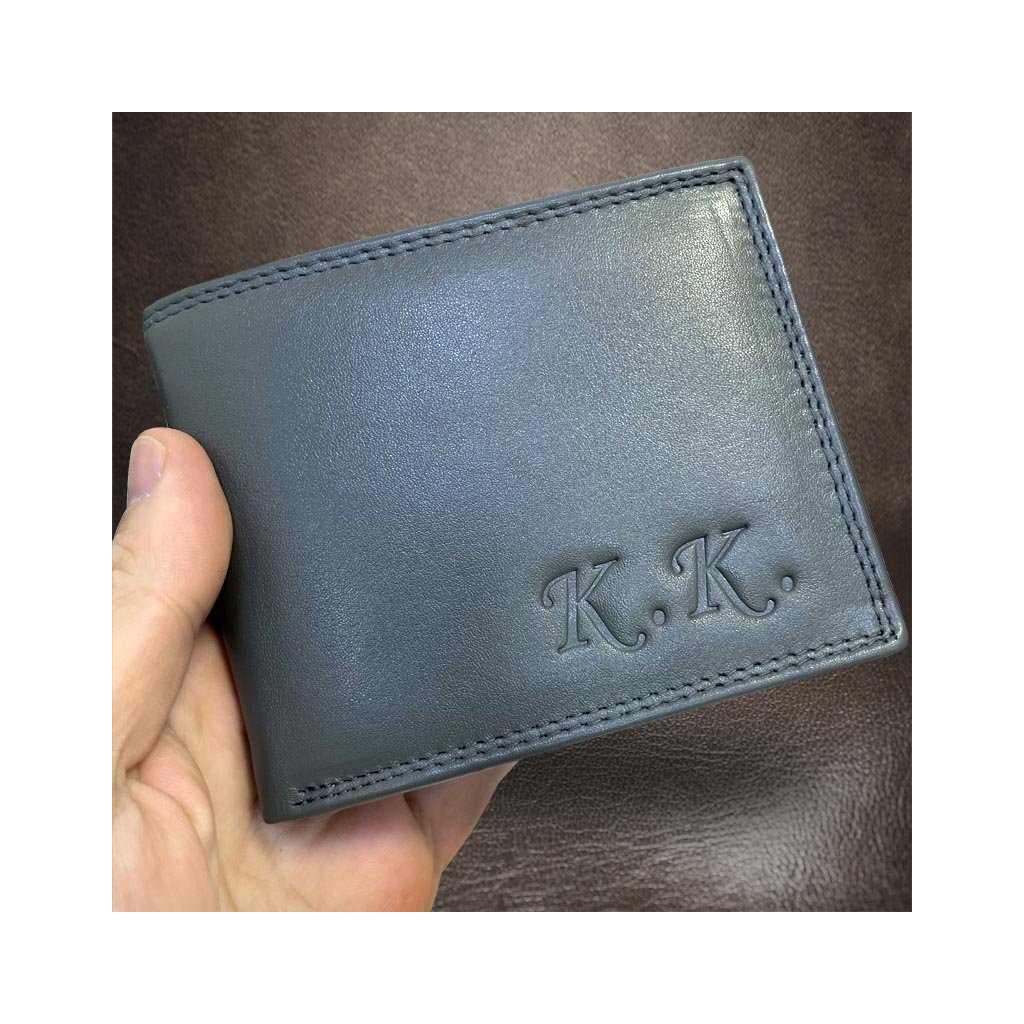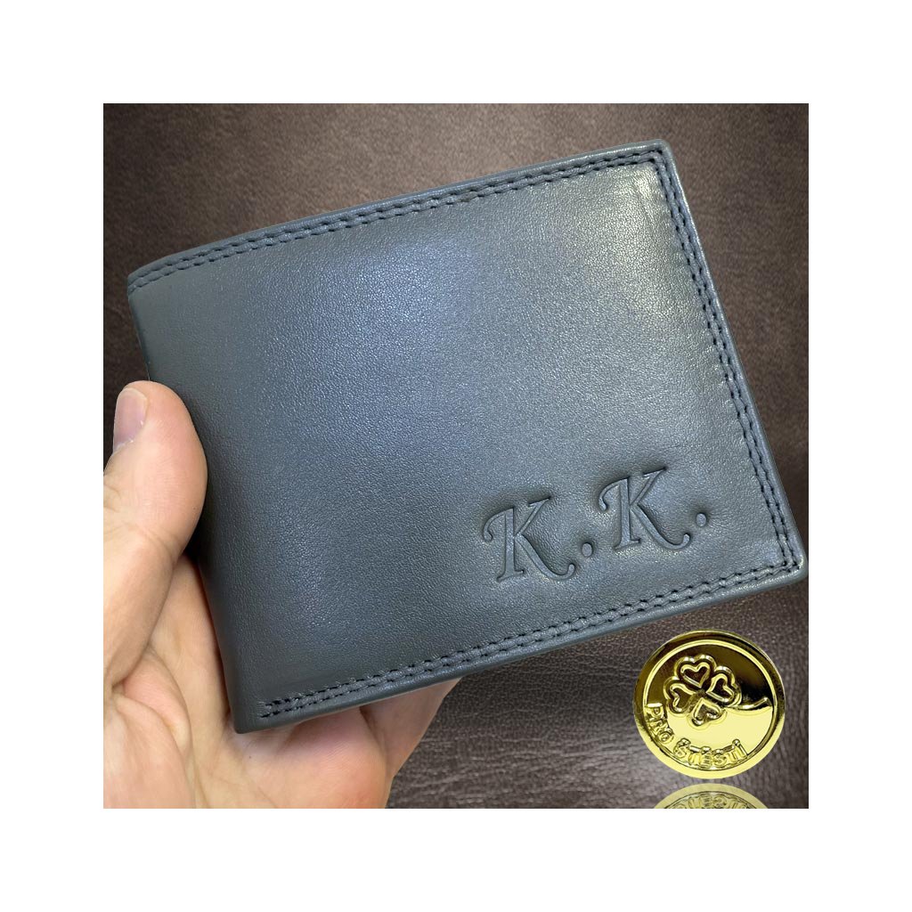 Pánská šedá kožená peněženka BEORIGINAL Leather s monogramem (ražba) + Akce - zlatá mince Pro štěstí ZDARMA
