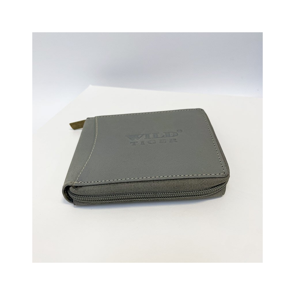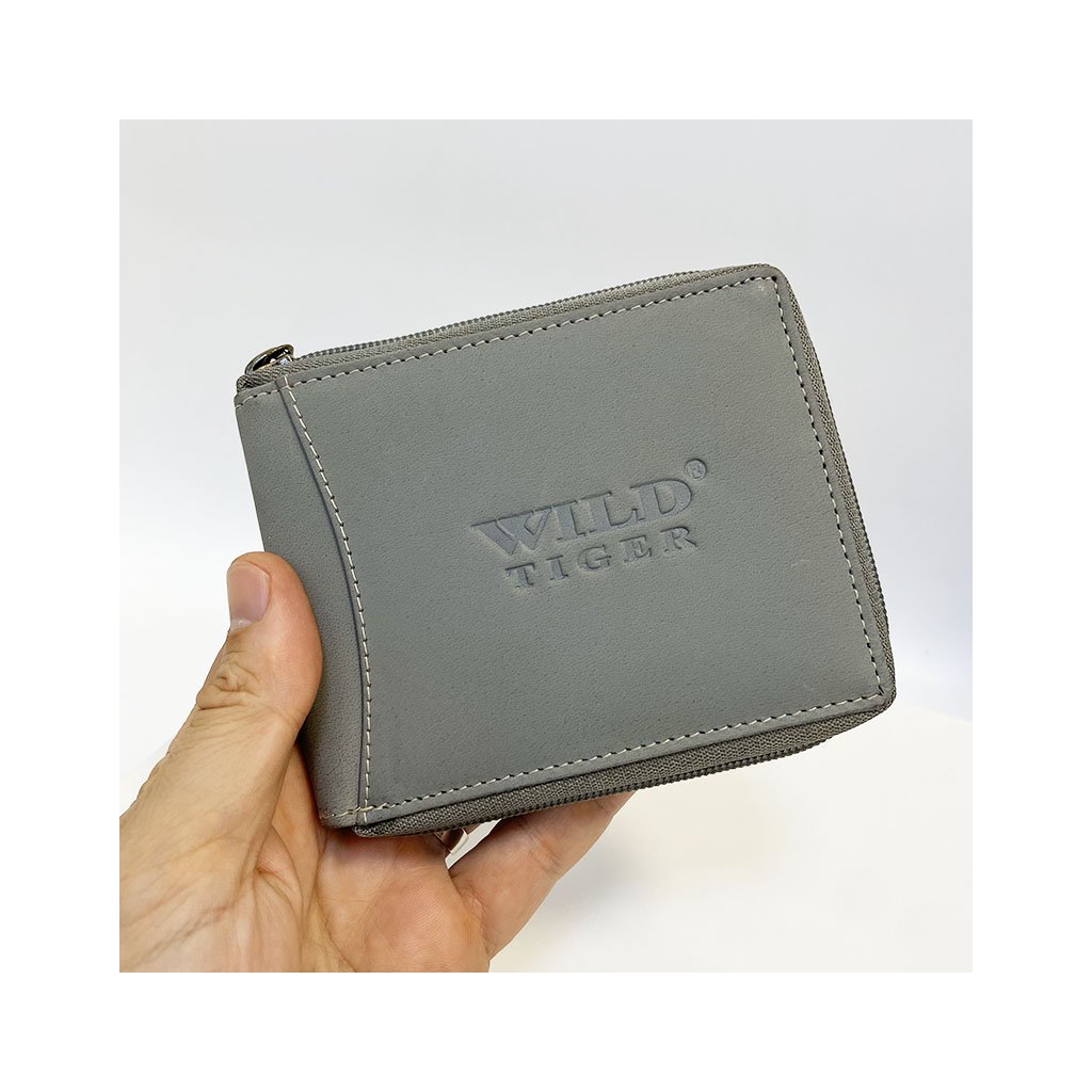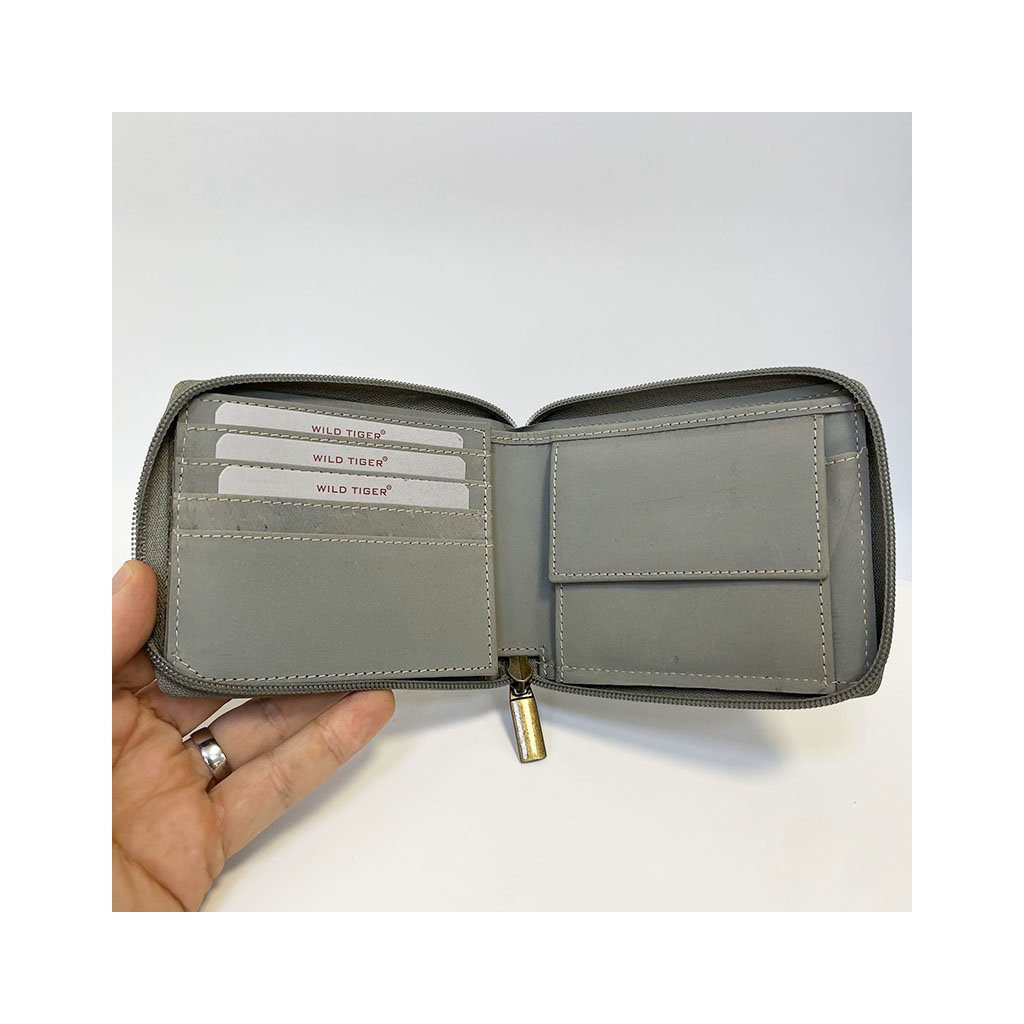 Pánská šedá kožená peněženka celá na zip Tiger Leather s monogramem a vlastním textem + Akce - zlatá mince Pro štěstí ZDARMA