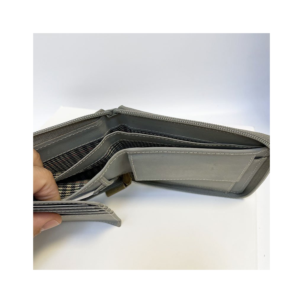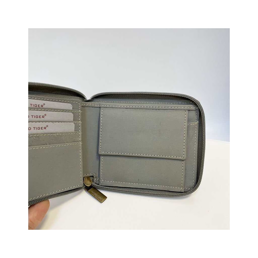 Pánská šedá kožená peněženka celá na zip Tiger Leather s monogramem a vlastním textem