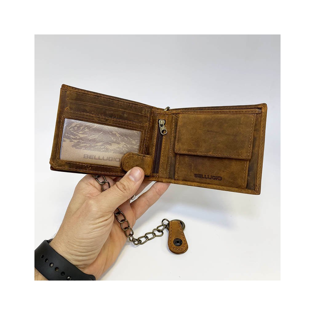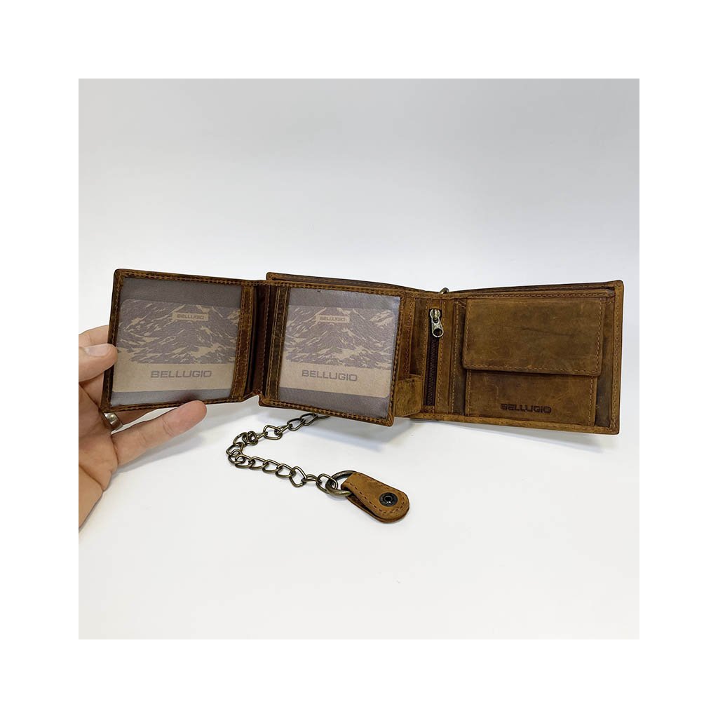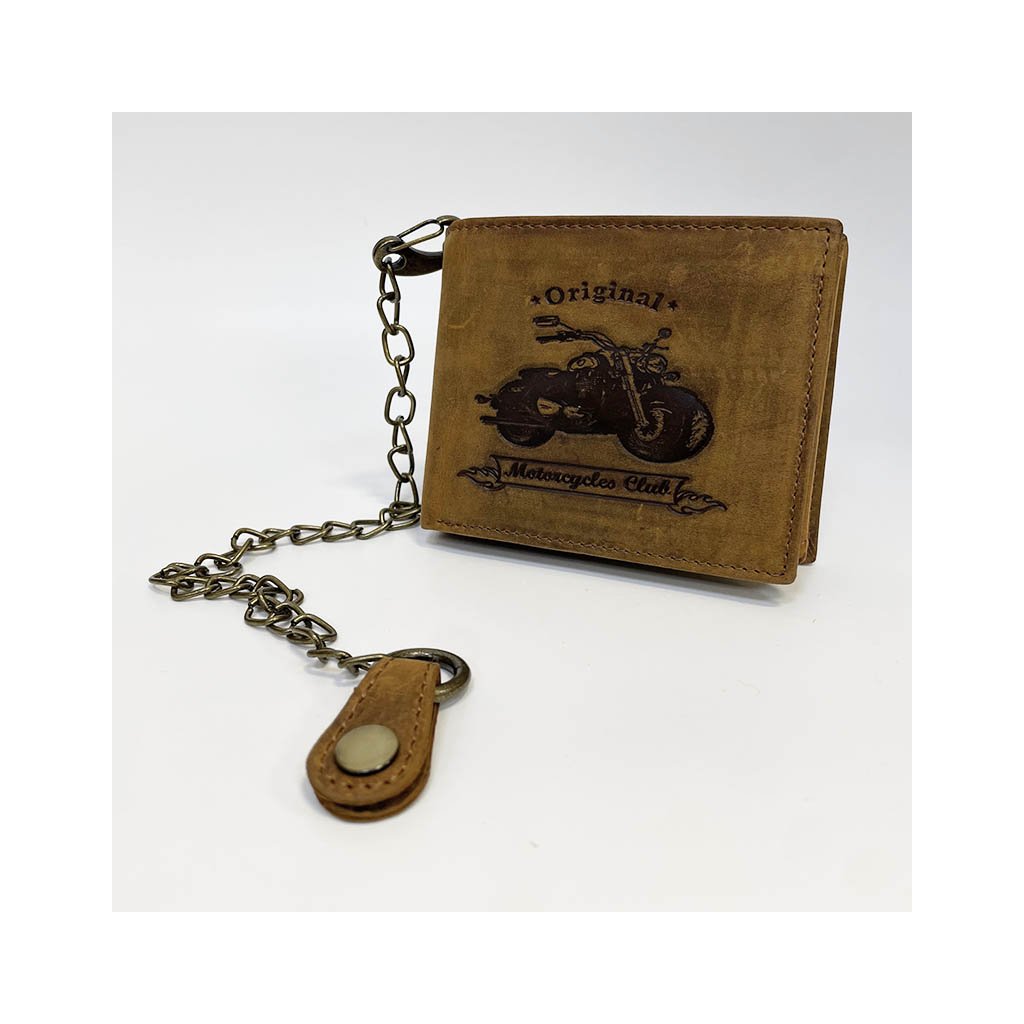 Pánská světle hnědá kožená peněženka s MOTORKOU a řetízkem BELLUGIO Leather