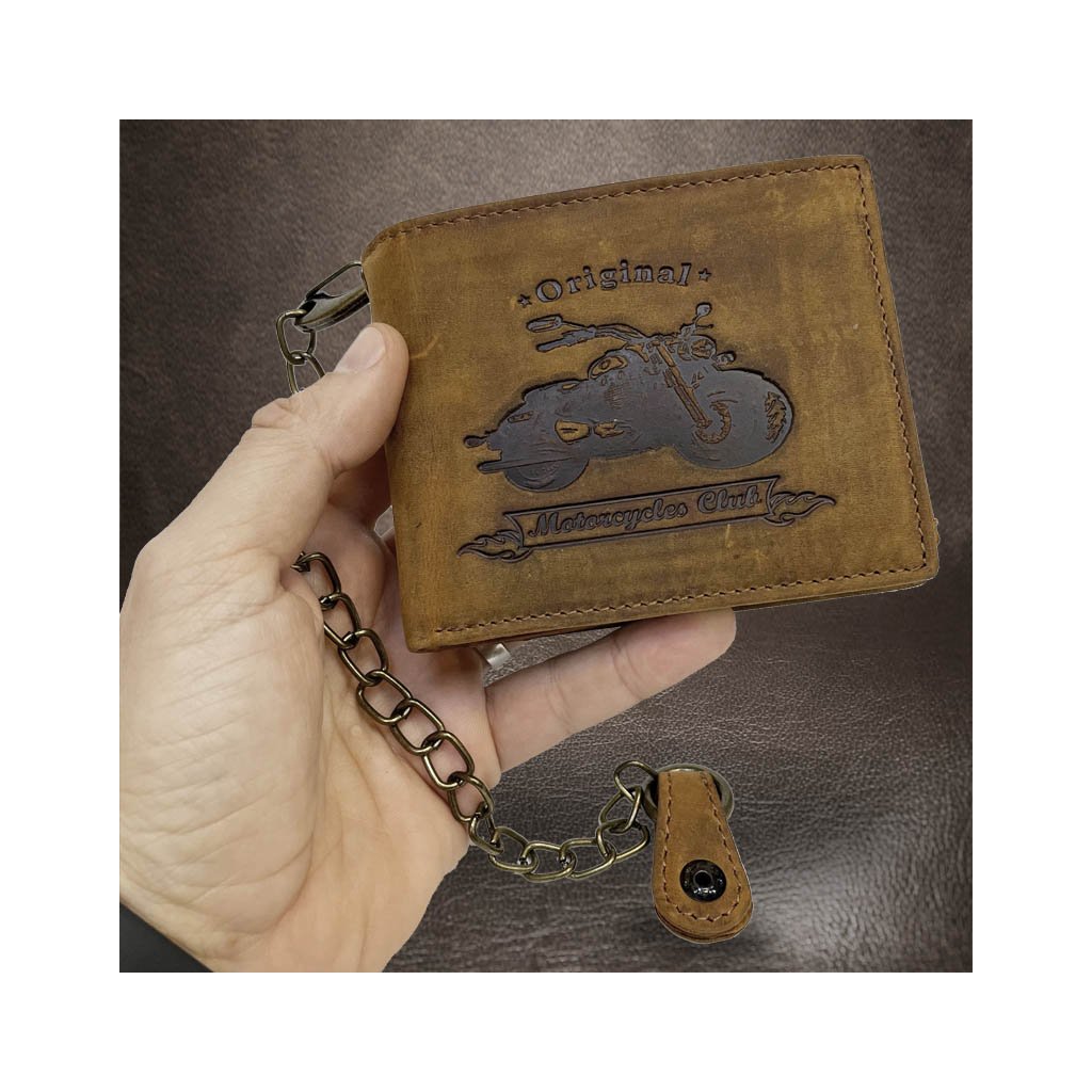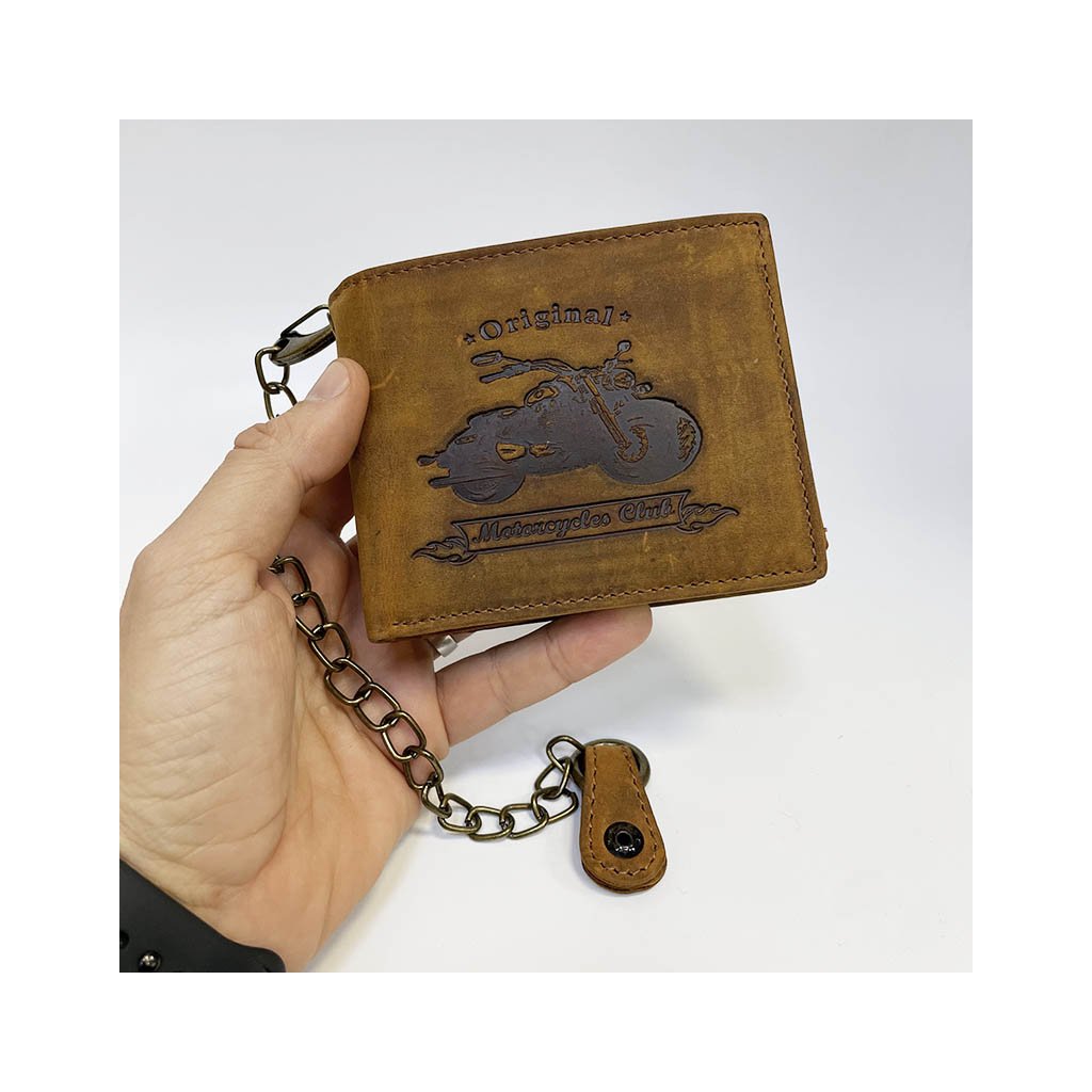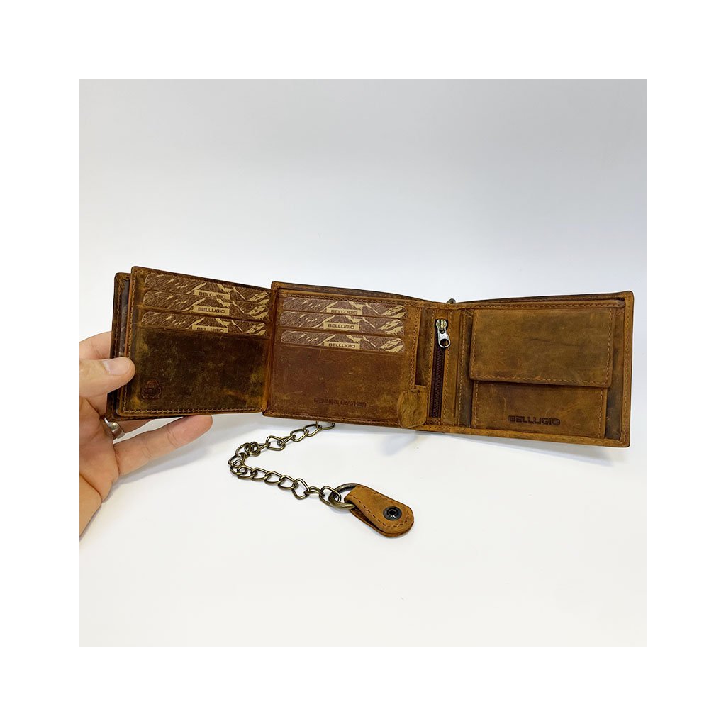 Pánská světle hnědá kožená peněženka s MOTORKOU a řetízkem BELLUGIO Leather