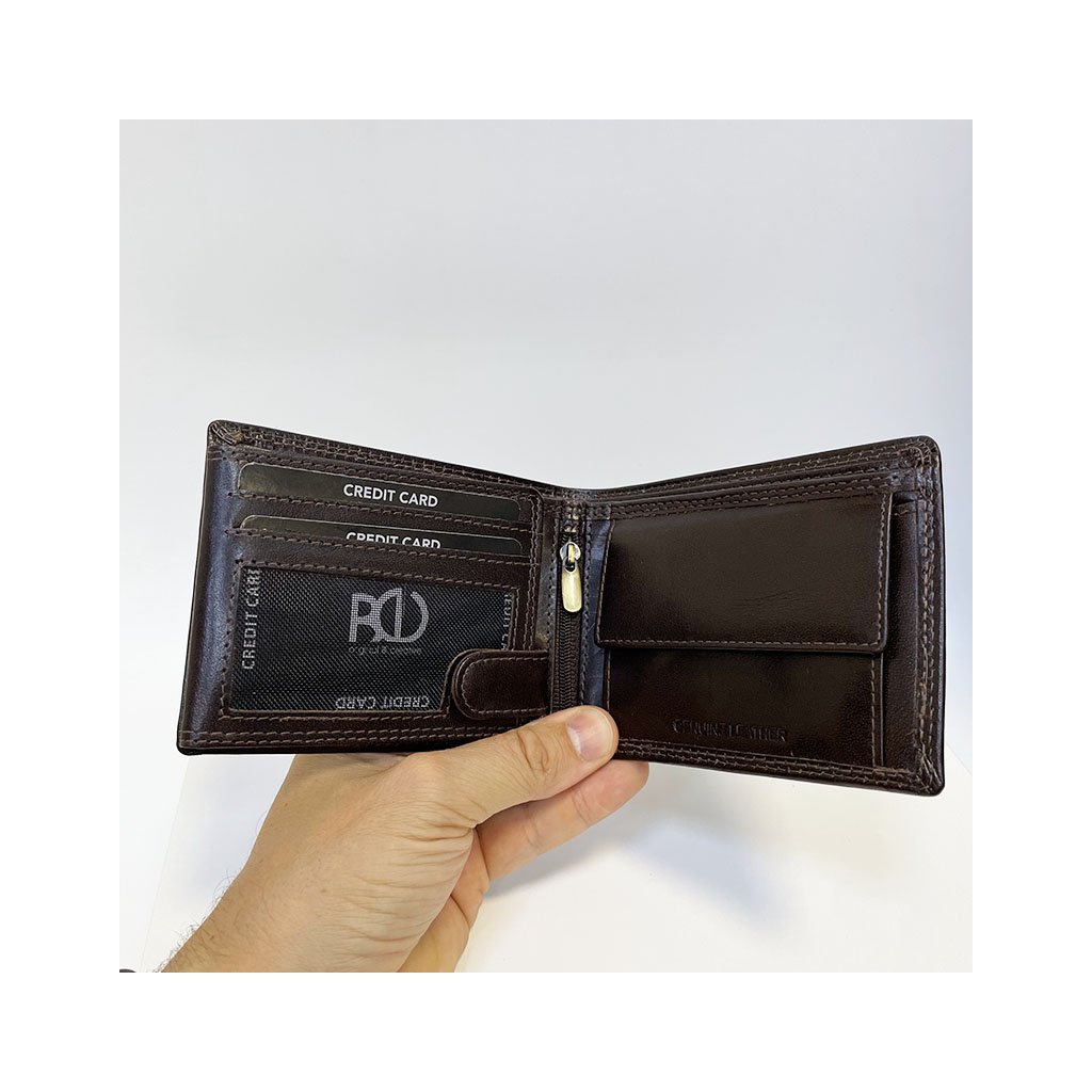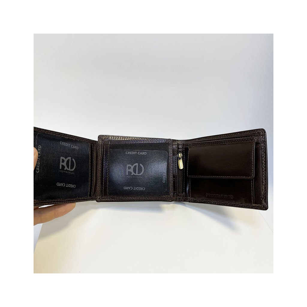 Pánská tmavě hnědá kožená peněženka ROYAL Leather RFID s vlastním monogramem, textem nebo fotkou + Akce - zlatá mince Pro štěstí ZDARMA