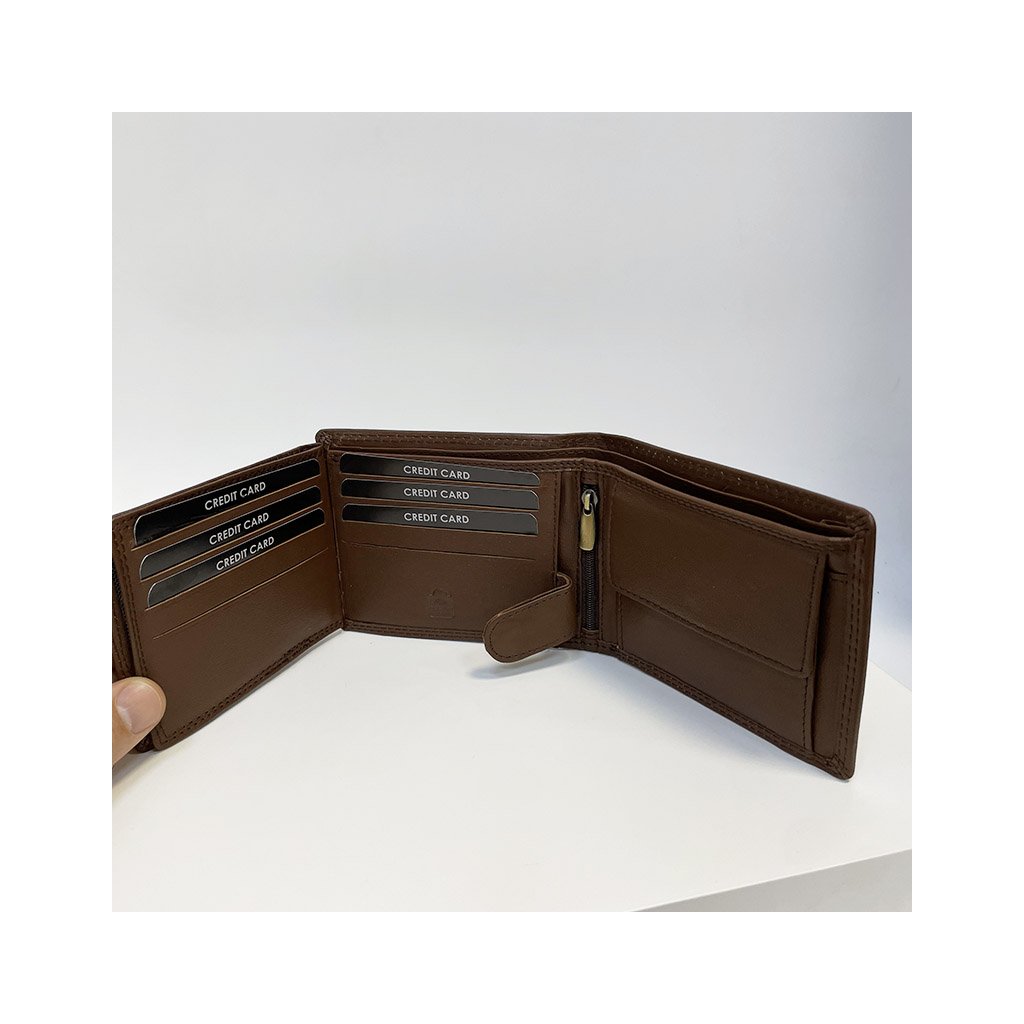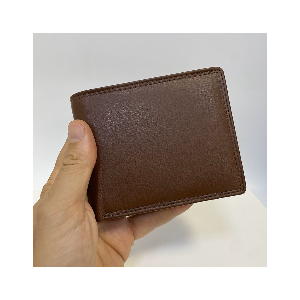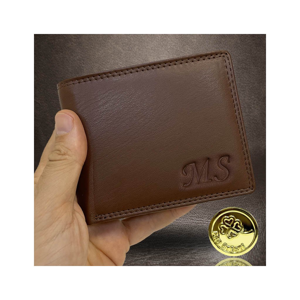 Pánská tmavě hnědá NAPPA kožená peněženka RFID BEORIGINAL Leather s monogramem (ražba) + Akce - zlatá mince Pro štěstí ZDARMA