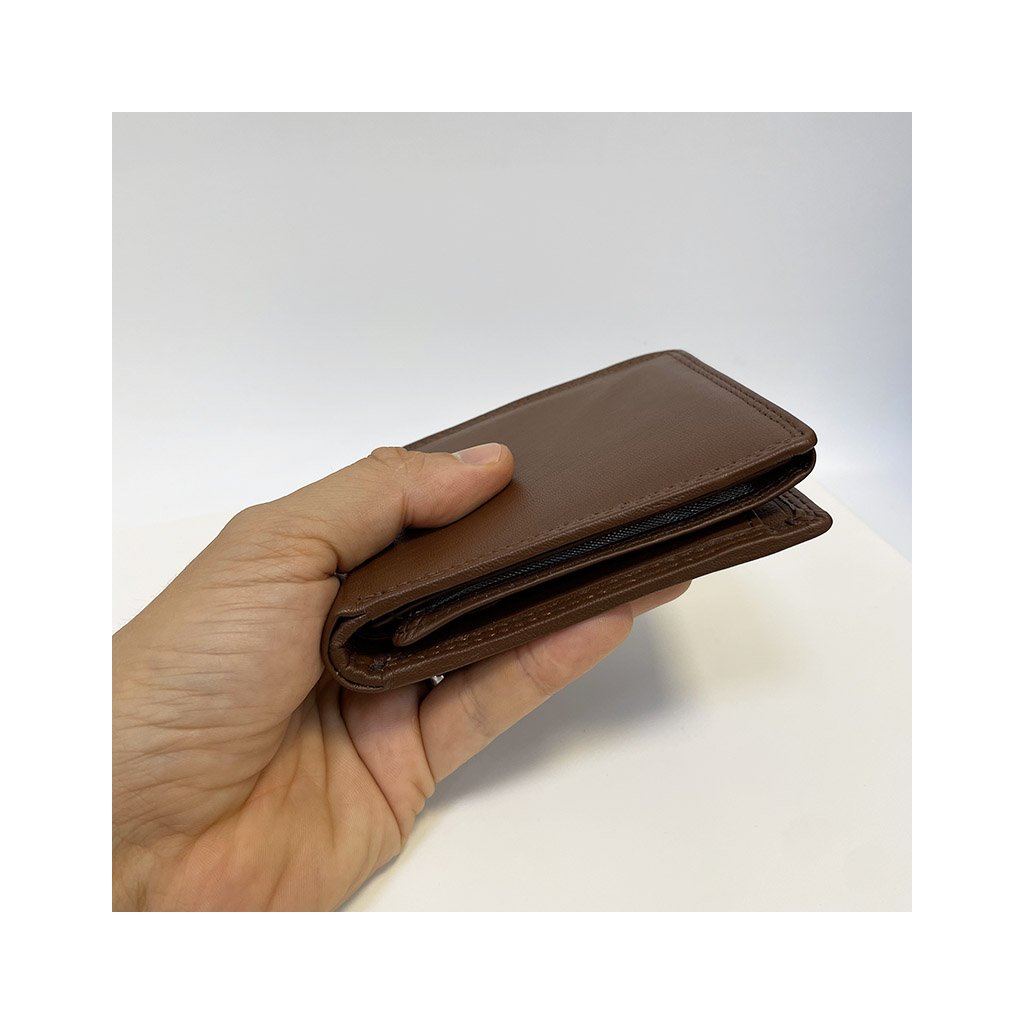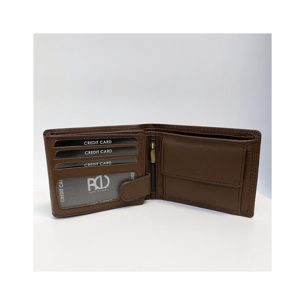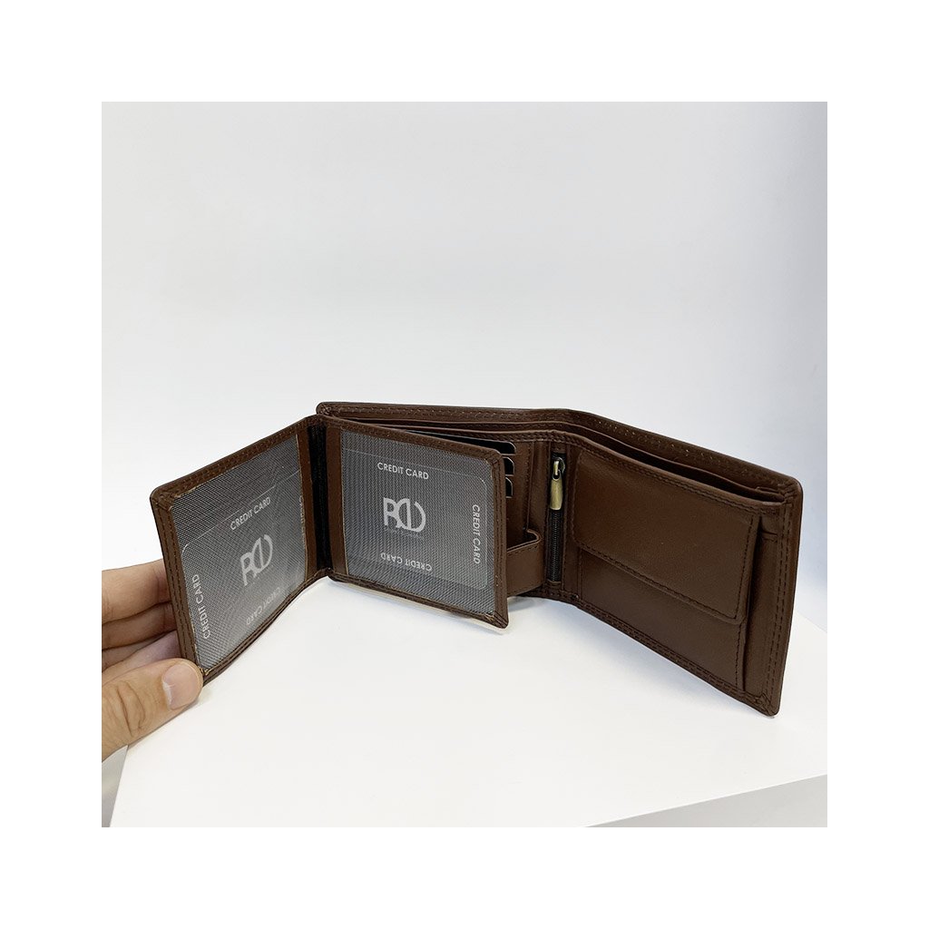 Pánská tmavě hnědá NAPPA kožená peněženka RFID BEORIGINAL Leather s monogramem (ražba) + Akce - zlatá mince Pro štěstí ZDARMA
