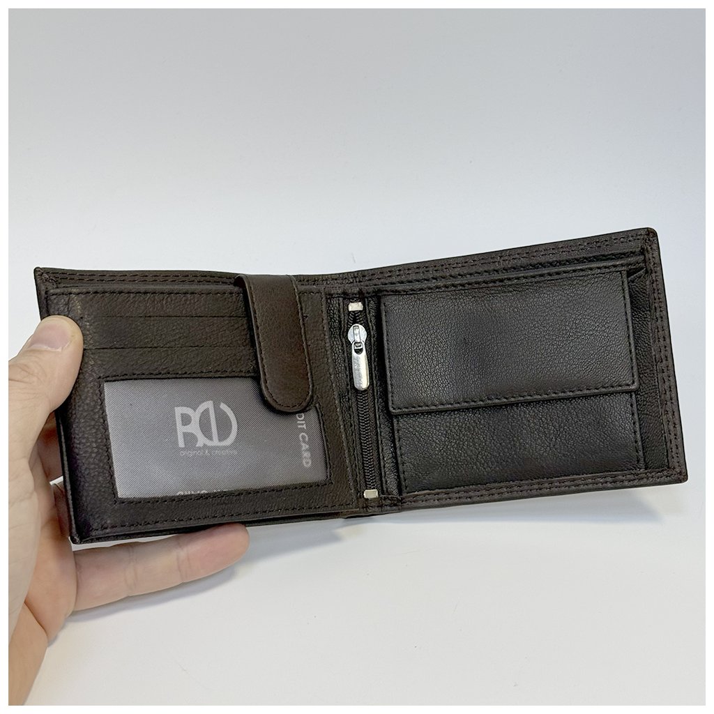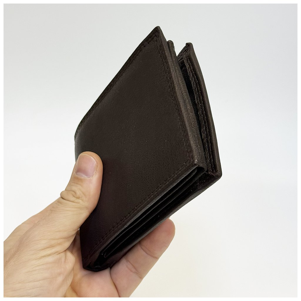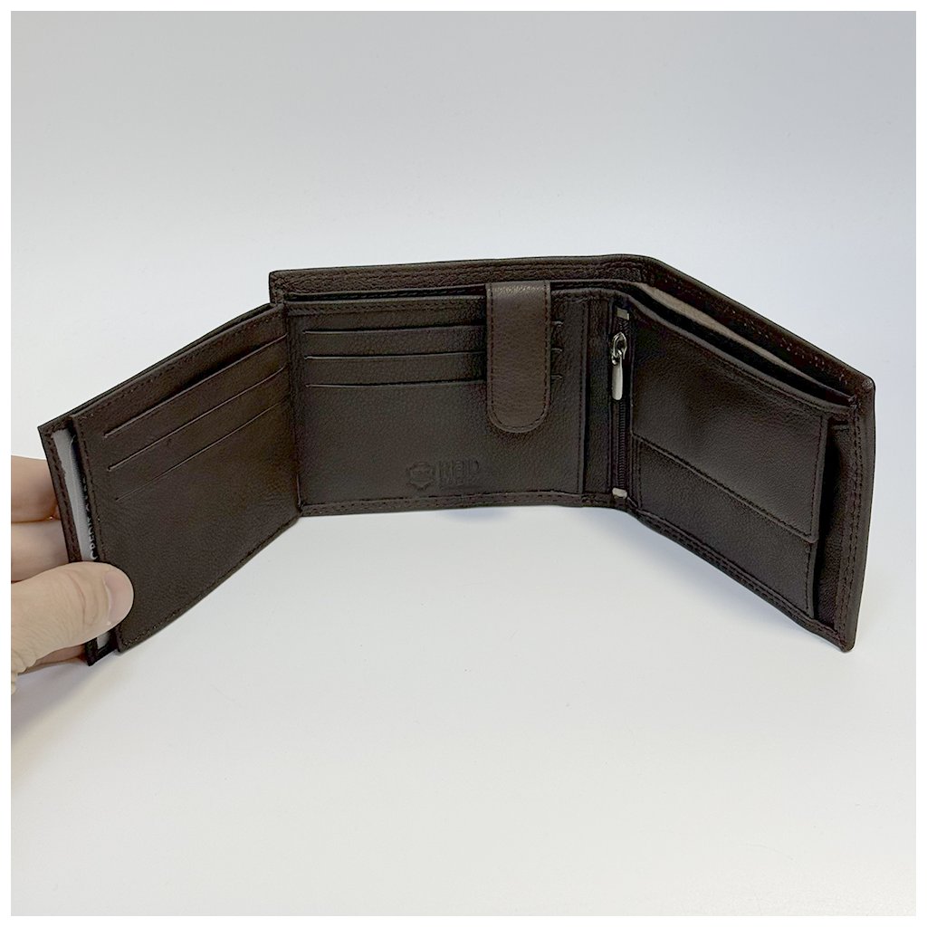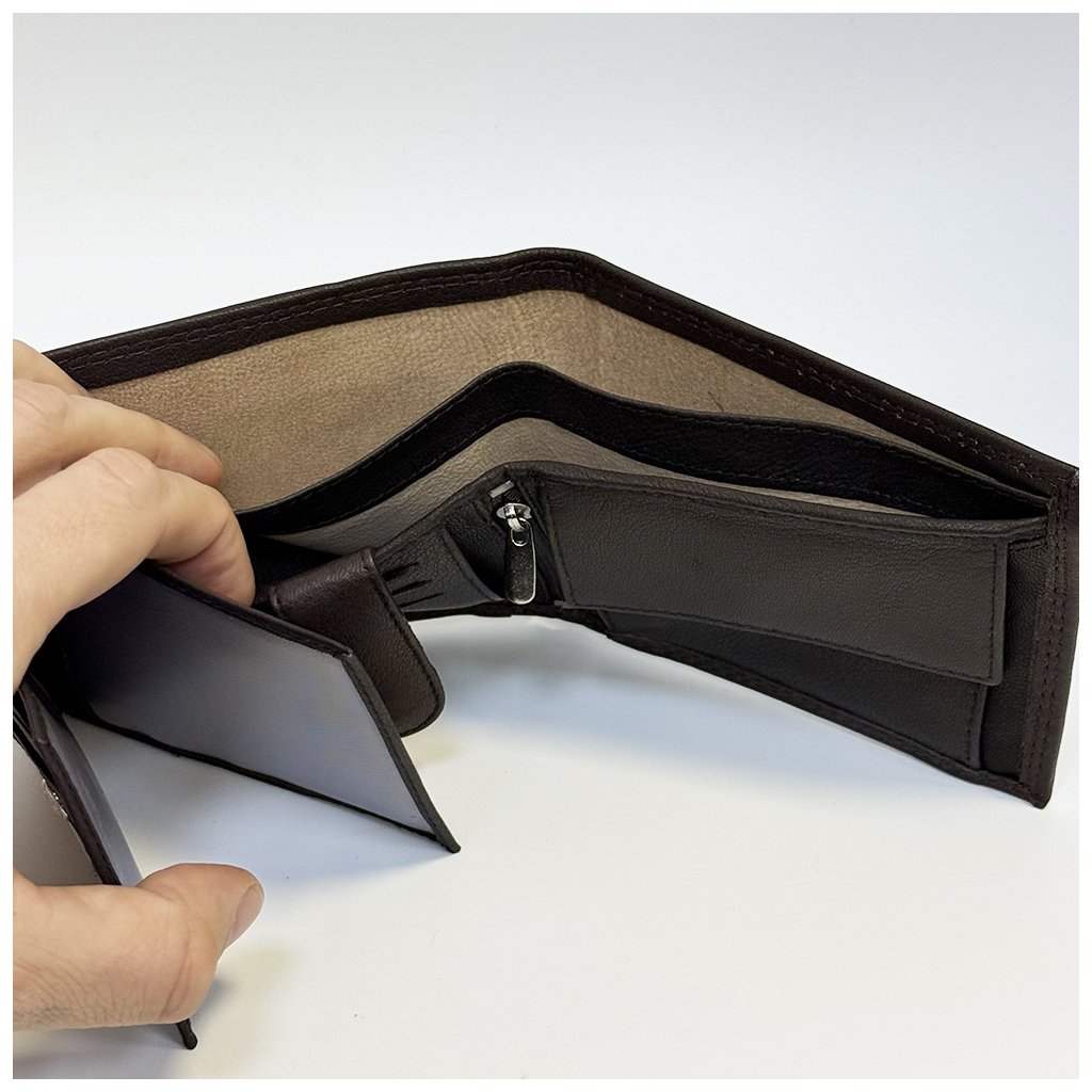 Pánská tmavě hnědá NAPPA kožená peněženka RFID BEORIGINAL Leather s monogramem (ražba) + Akce - zlatá mince Pro štěstí ZDARMA