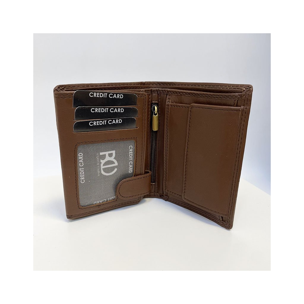 Pánská tmavě hnědá NAPPA kožená peněženka RFID BEORIGINAL Leather na výšku s monogramem (ražba)