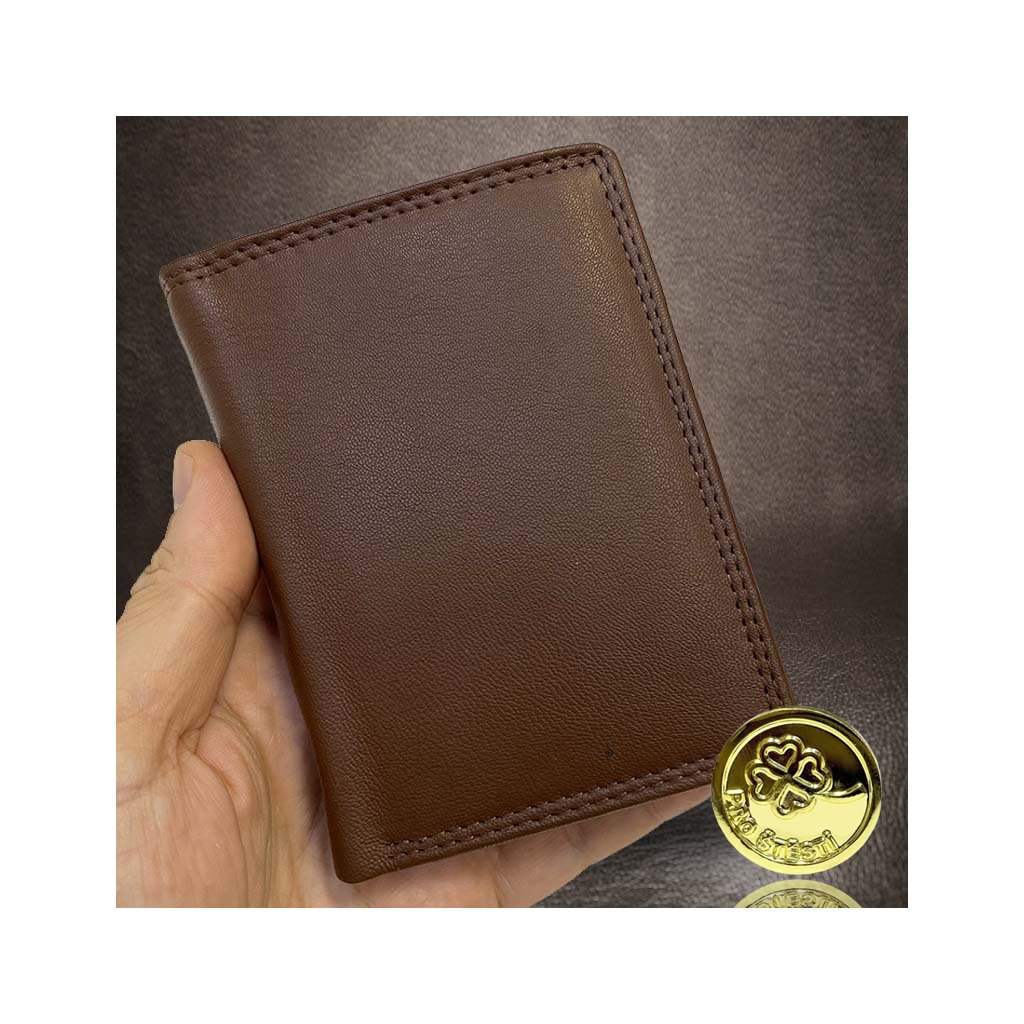 Pánská tmavě hnědá SOFT kožená peněženka RFID BEORIGINAL Leather s monogramem (ražba) + Akce - zlatá mince Pro štěstí ZDARMA