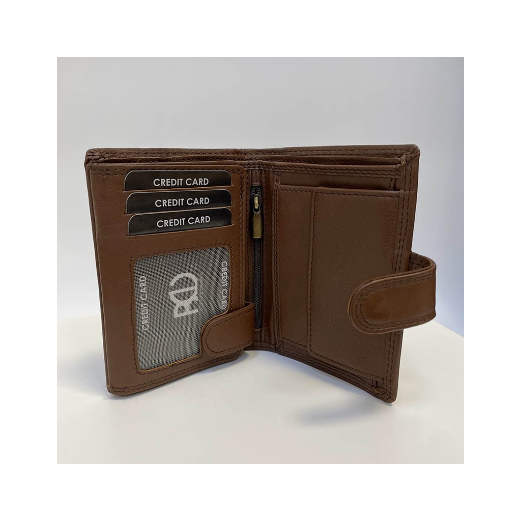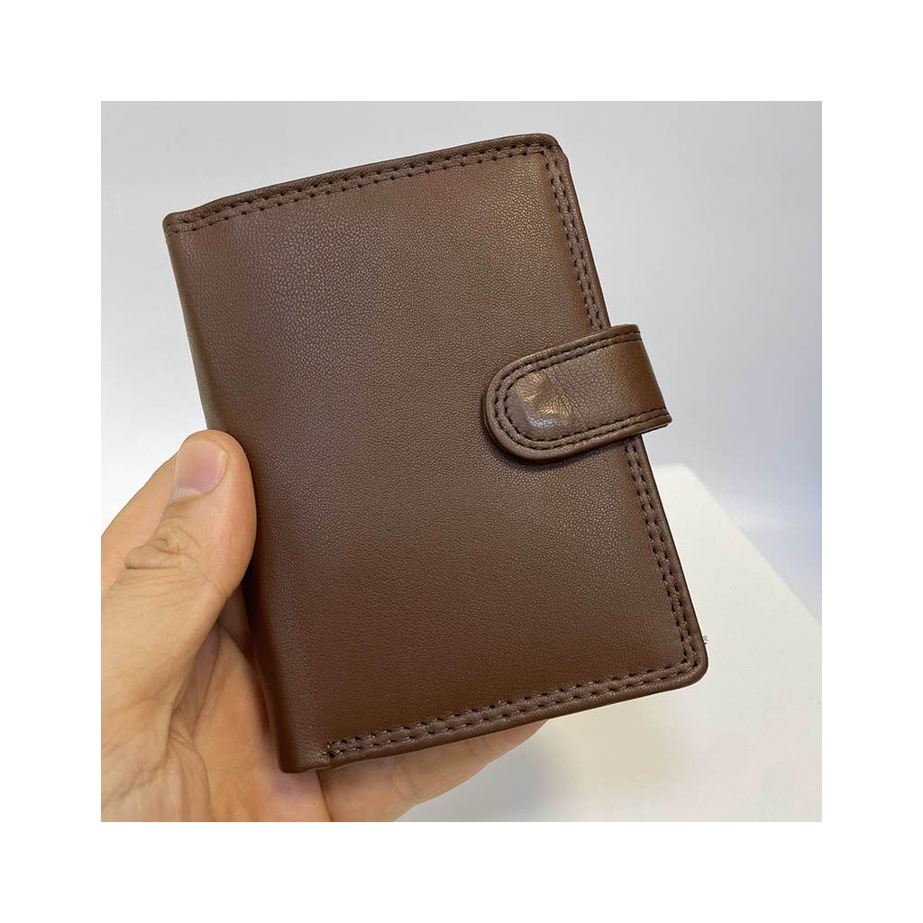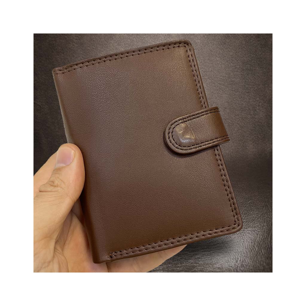 Pánská tmavě hnědá NAPPA kožená peněženka RFID BEORIGINAL Leather na výšku se zapínáním s monogramem (ražba)