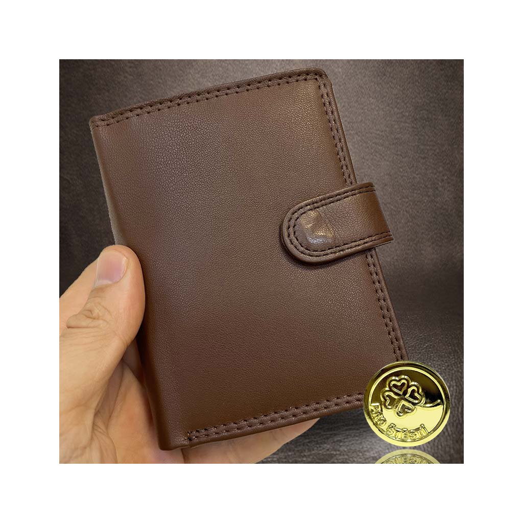 Pánská tmavě hnědá SOFT kožená peněženka RFID BEORIGINAL Leather s monogramem (ražba) + Akce - zlatá mince Pro štěstí ZDARMA