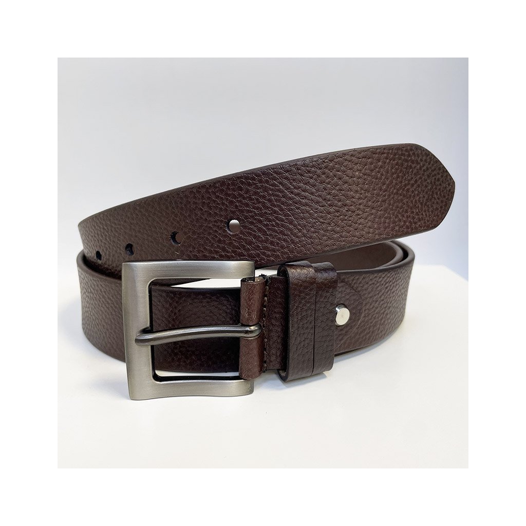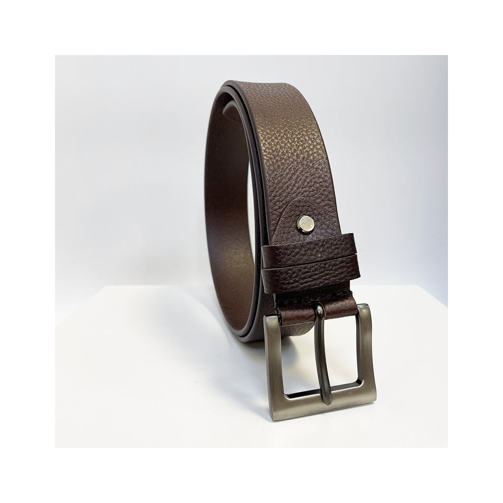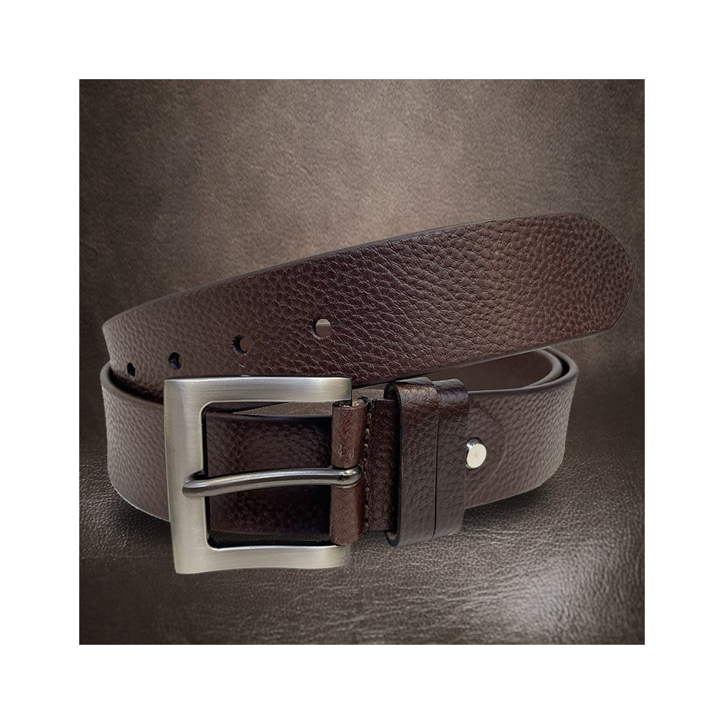 Tmavě hnědý kožený pásek s možností ražby monogramu nebo gravírování textu, loga či obrázku. Elegantní doplněk s dárkovým balením.