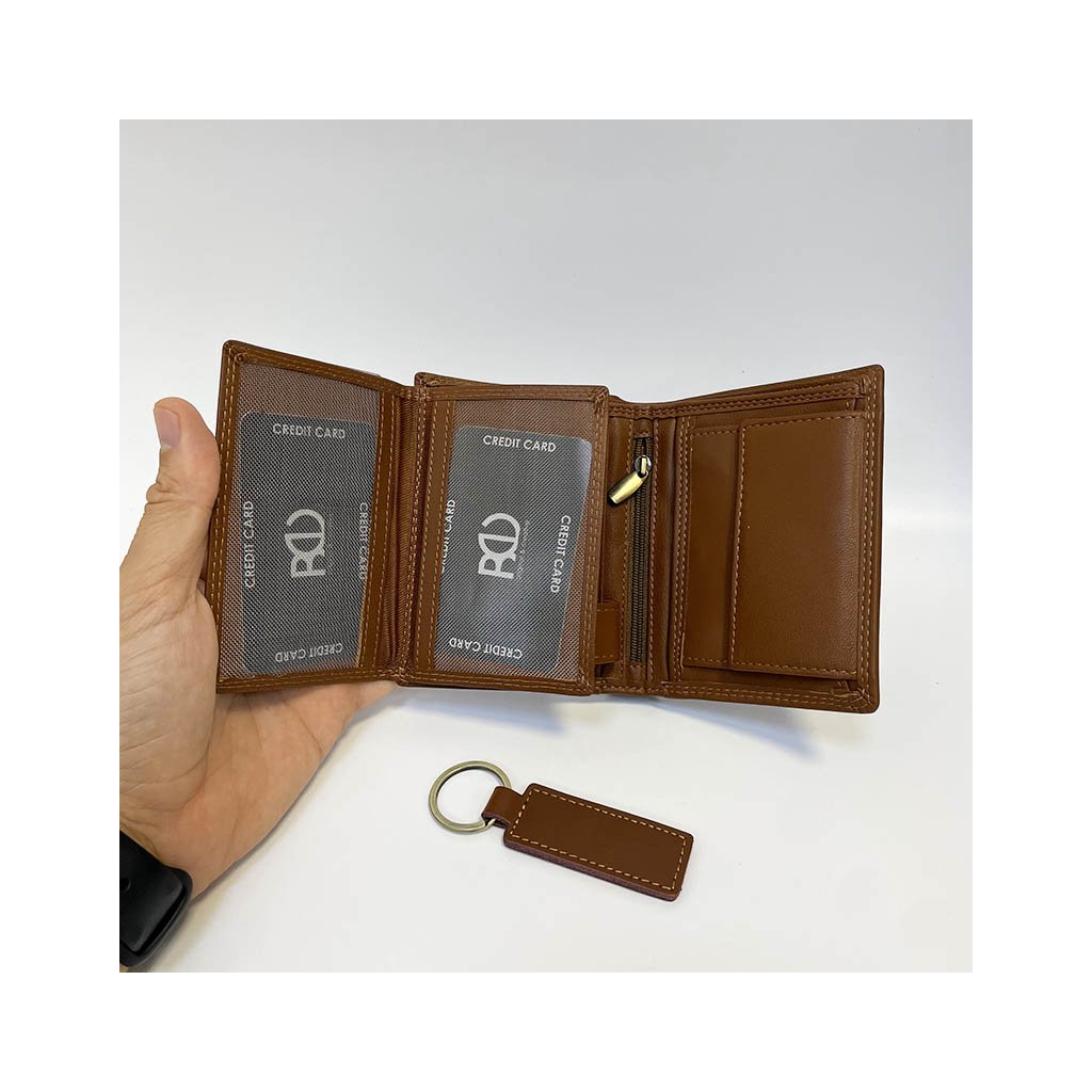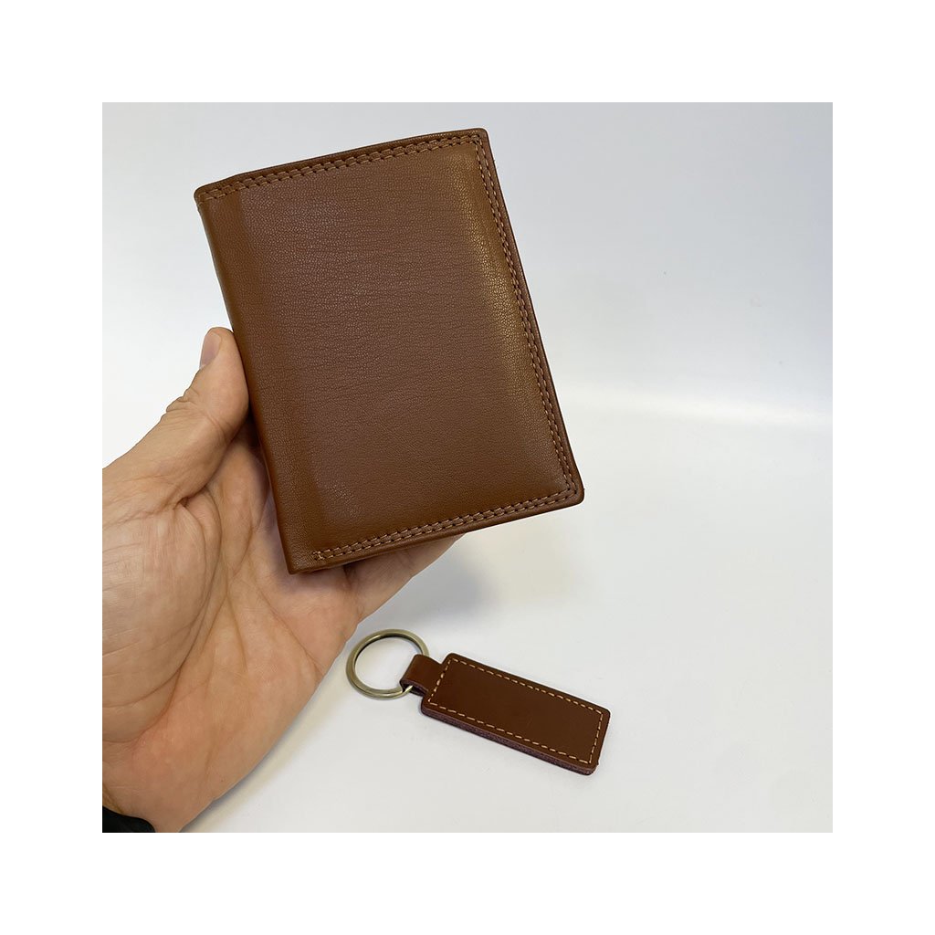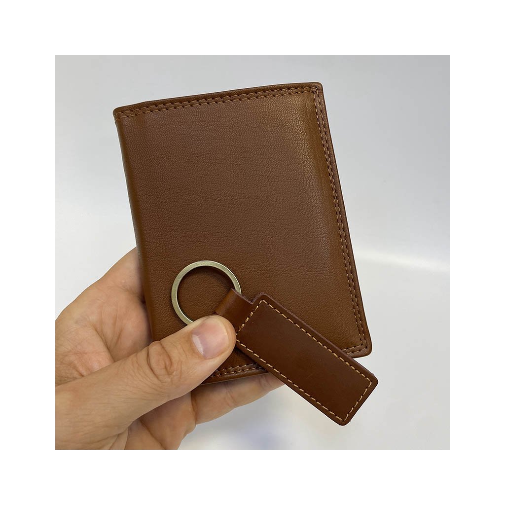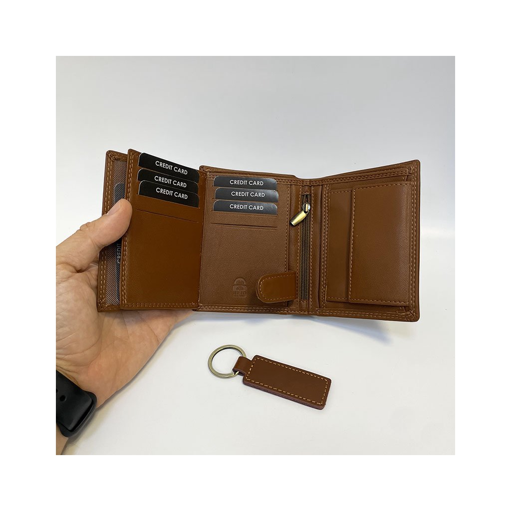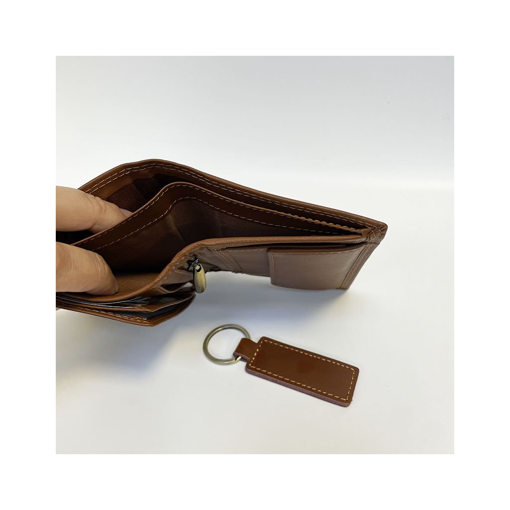 Elegantní kožený set pro muže ve světle hnědém provedení spojuje minimalistickou peněženku bez zapínání a klíčenku z pravé hovězí kůže. Kromě vysoké kvality nabízí i něco víc – možnost personalizace. Díky přesnému laserovému gravírování vám na peněženku i klíčenku vyhotovíme monogram, jméno, text, věnování, logo nebo dokonce fotku.