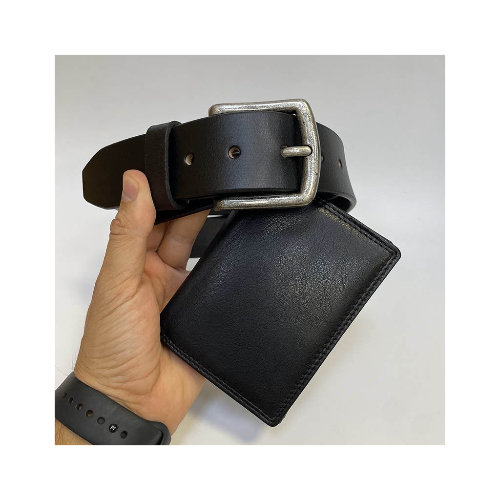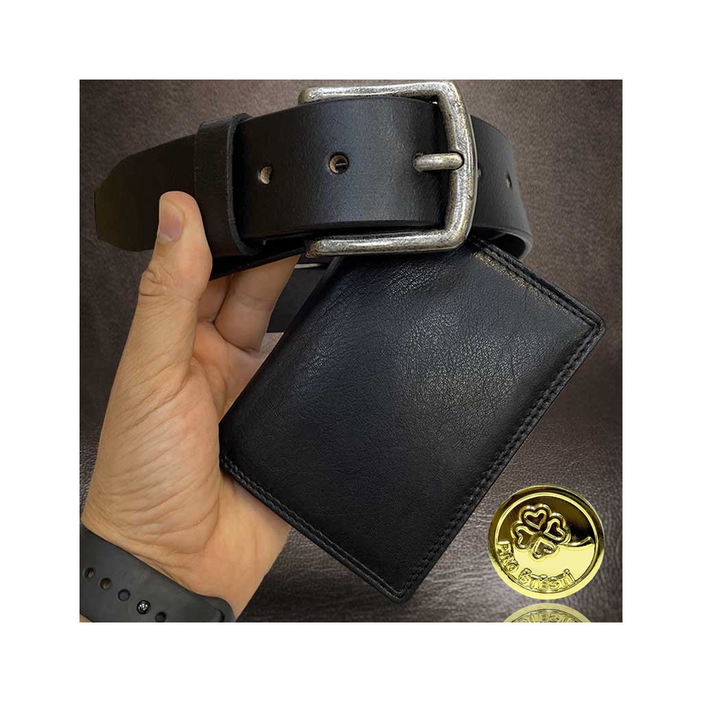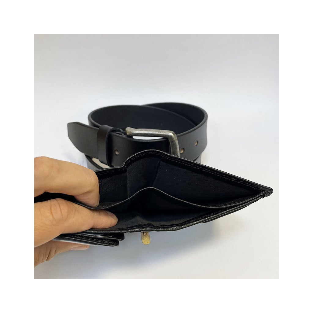 Pánský kožený černý set NAPPA BEORIGINAL Leather kožená peněženka a kožený pásek s monogramem (ražba) + Akce - zlatá mince Pro štěstí ZDARMA
