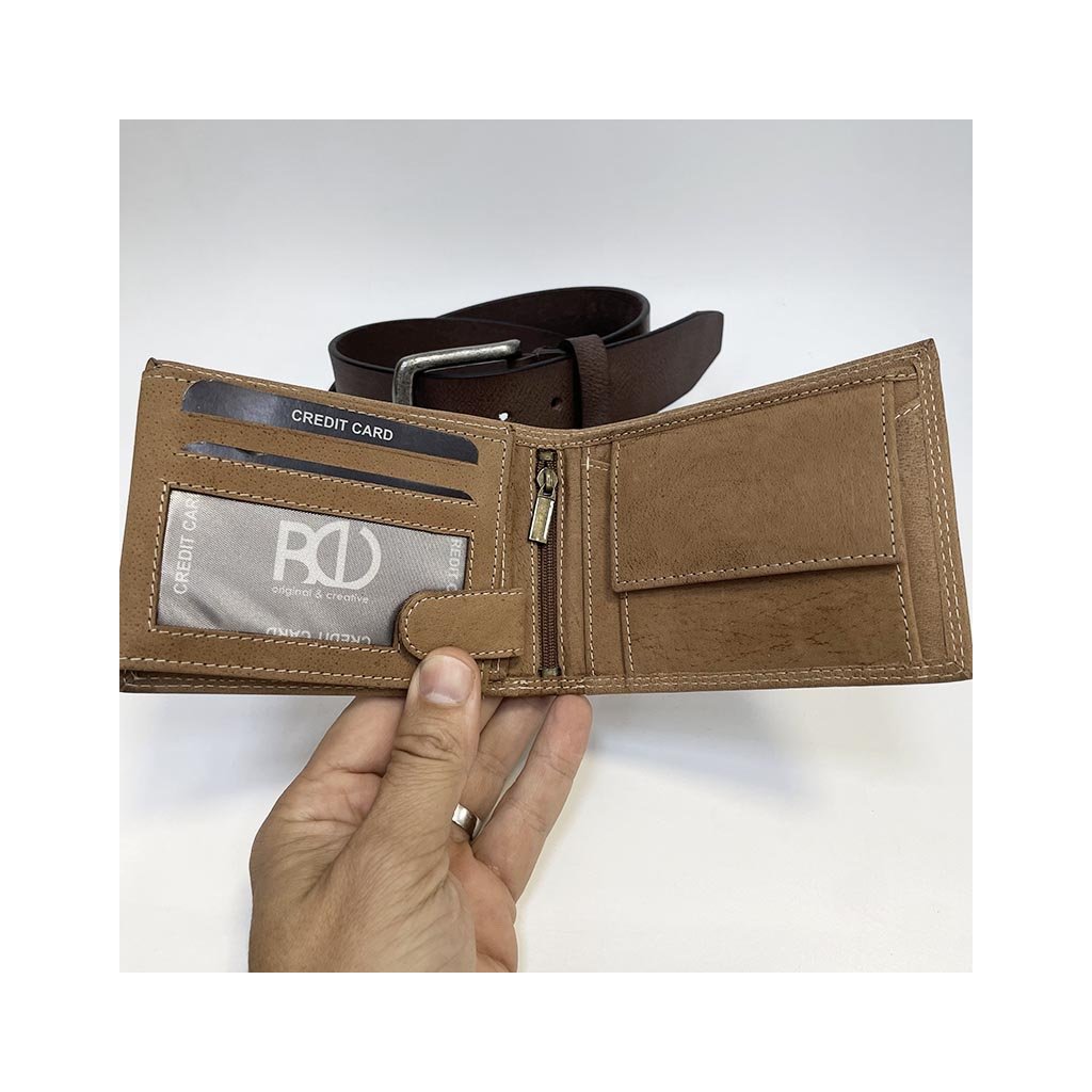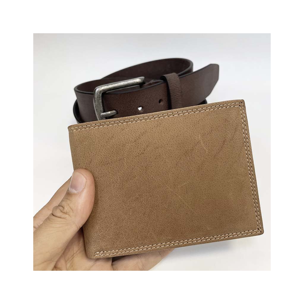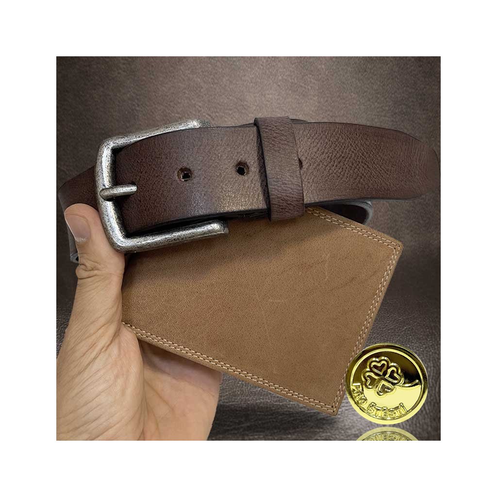 Součástí setu je klasická kožená peněženka a pásek z pravé hovězí kůže, které spolu barevně ladí a vytvářejí harmonický celek. Monogram dodává osobitost a jedinečnost – decentně a profesionálně vyražený přímo do kůže.