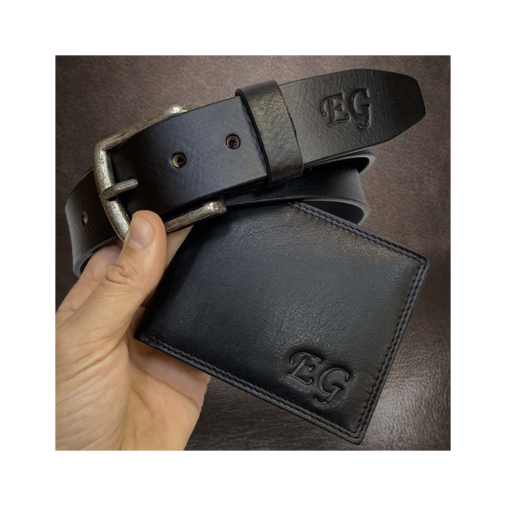 Oba produkty jsou vyrobeny z kvalitní hovězí kůže a mohou být doplněny o váš vlastní monogram, decentně vyražený ražbou. Celý set je zabalen do luxusní dárkové krabičky, takže je připraven ihned k předání – ať už jako dárek, nebo osobní stylová volba.