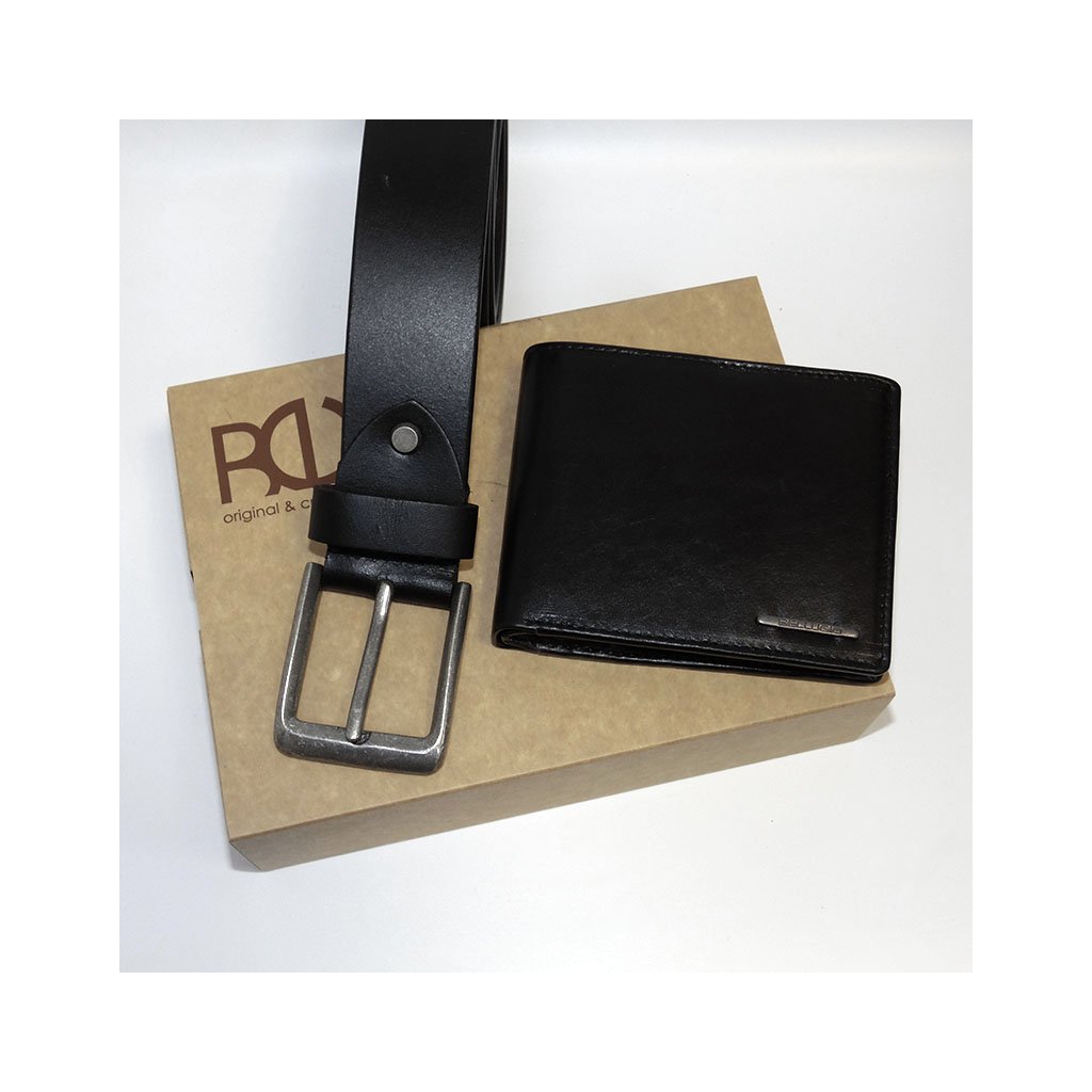 Pánský kožený set BELLUGIO – peněženka a pásek s monogramem