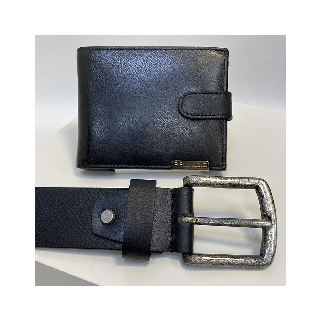 Tento pánský dárkový set značky BELLUGIO kombinuje černou koženou peněženku a kožený pásek do jednoho perfektně sladěného celku. Oba produkty jsou vyrobeny z kvalitních materiálů s důrazem na funkčnost, vzhled i dlouhou životnost.