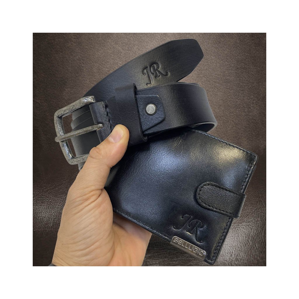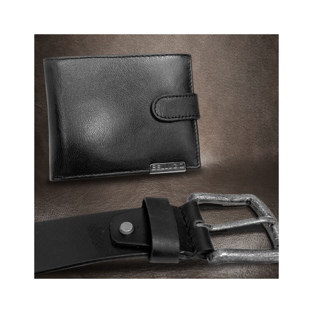 Pánský kožený set BELLUGIO – černá peněženka a pásek s vlastním monogramem
