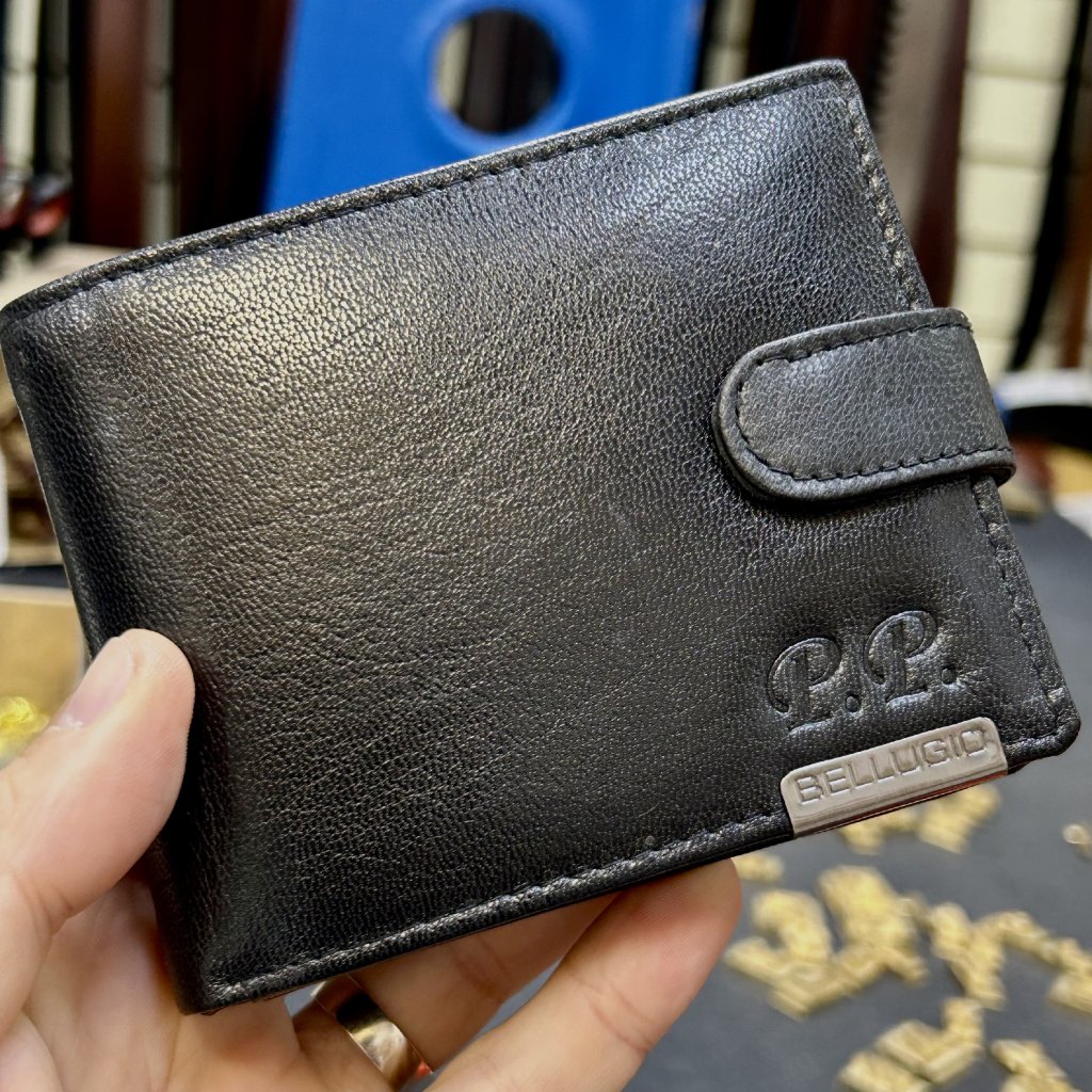 - Černá kožená peněženka – elegantní, odolná, praktická