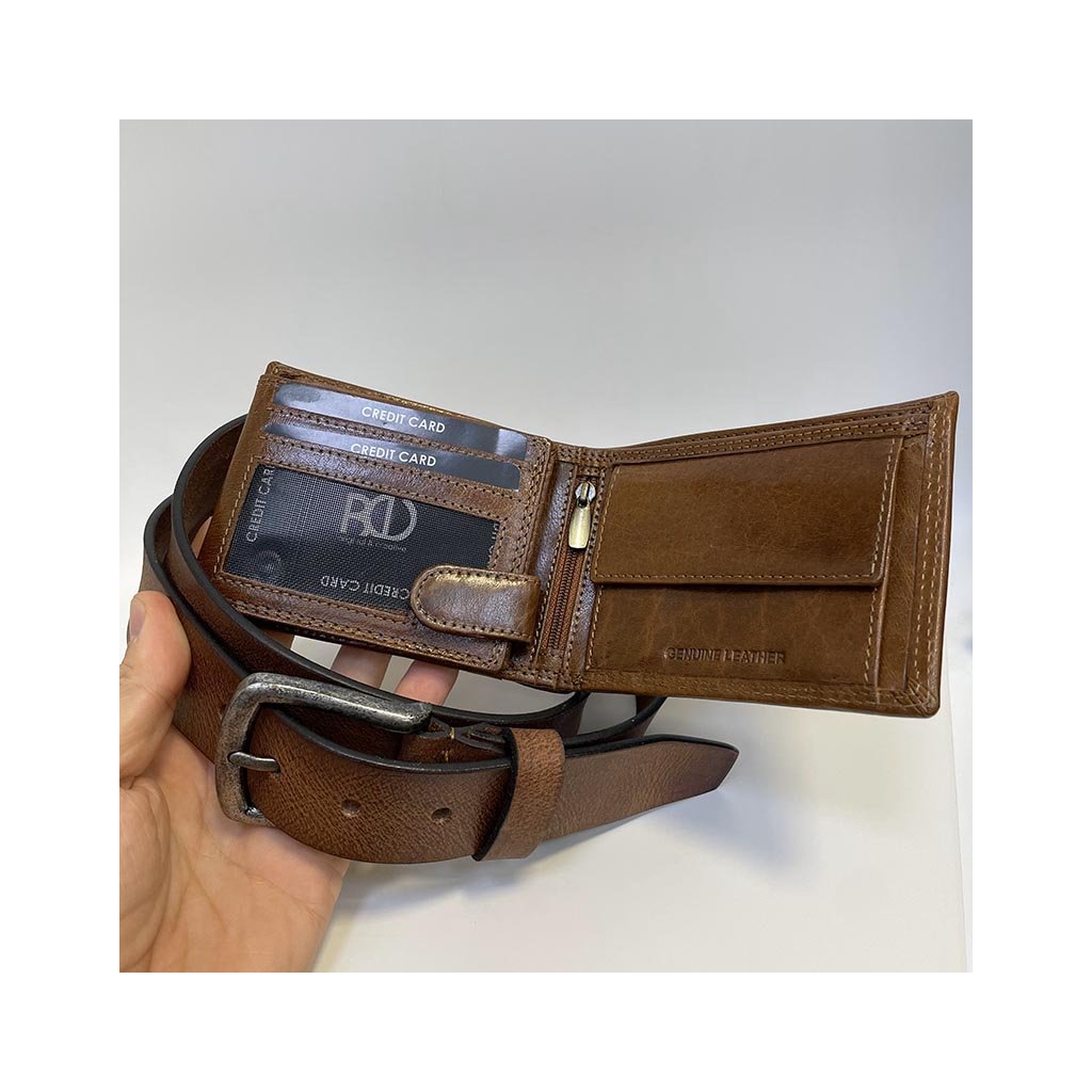 Pánský kožený set ROYAL – hnědá peněženka a pásek s vlastním monogramem