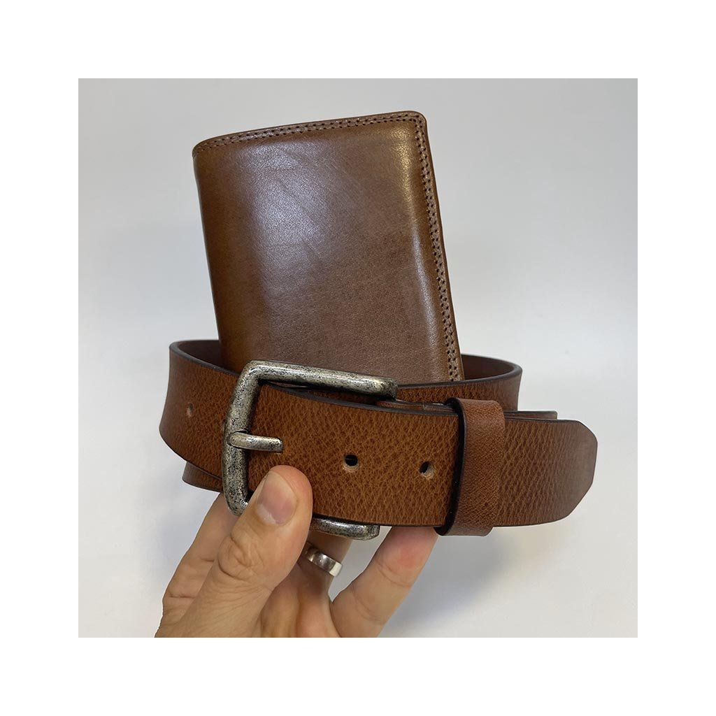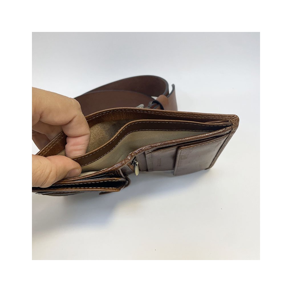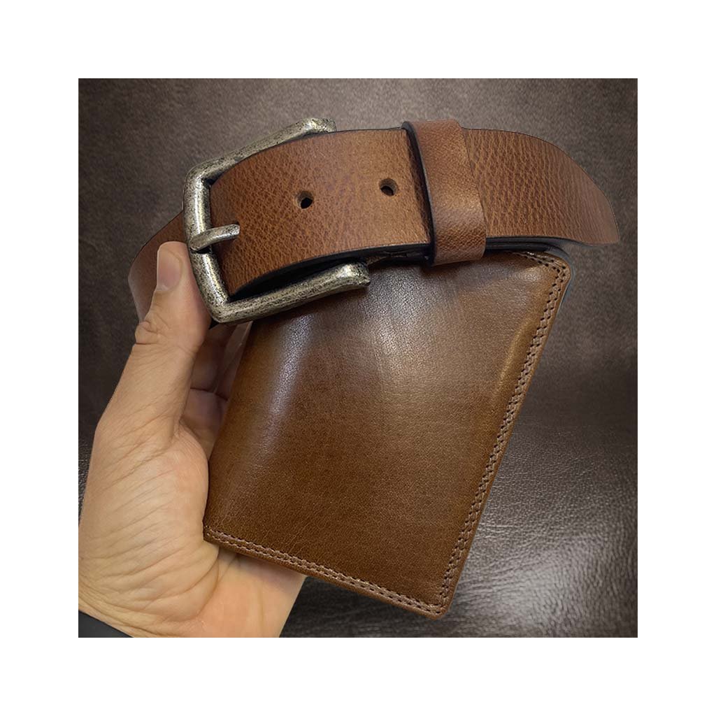Obsahuje koženou peněženku na výšku bez zapínání, která působí elegantně a čistě, a pásek z pravé hovězí kůže, který můžete doplnit vlastním monogramem. Oba produkty jsou zpracovány z kvalitní hnědé kůže a dodávány v luxusním dárkovém balení.