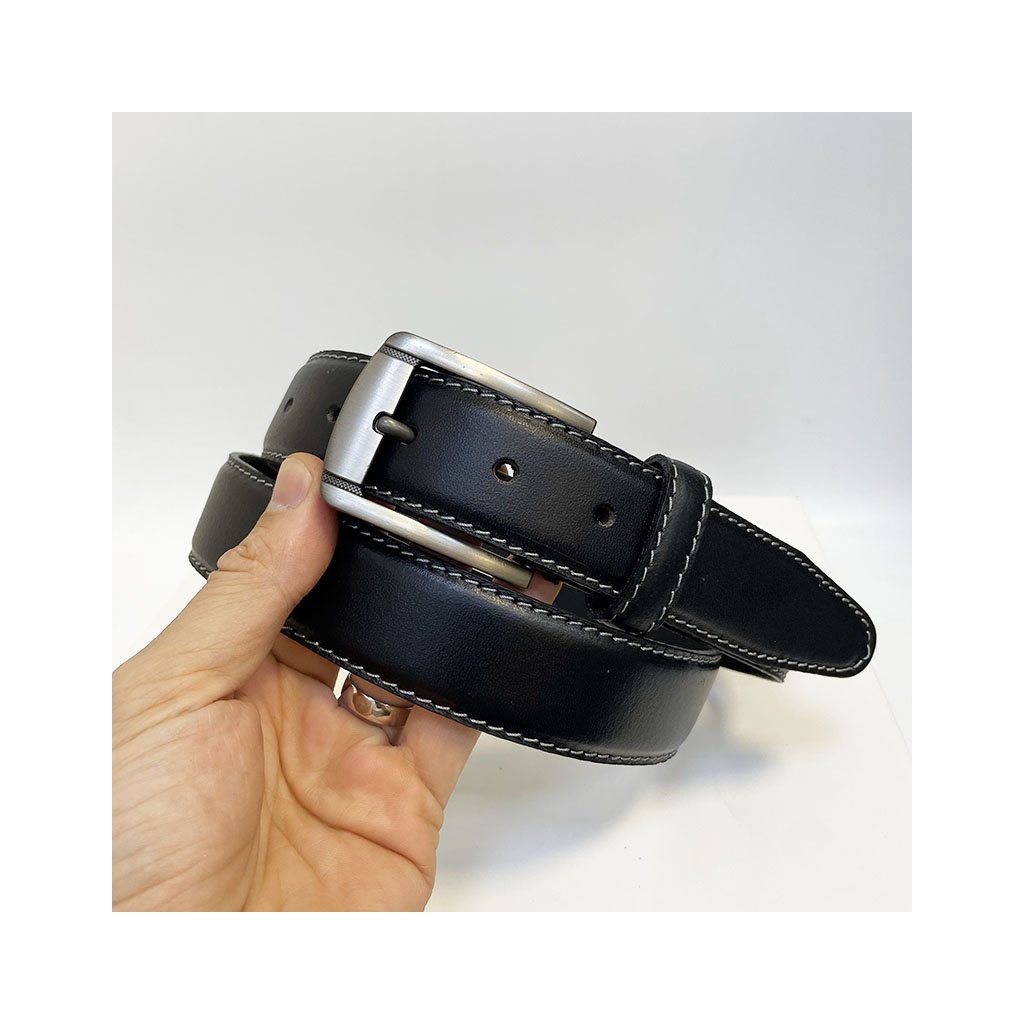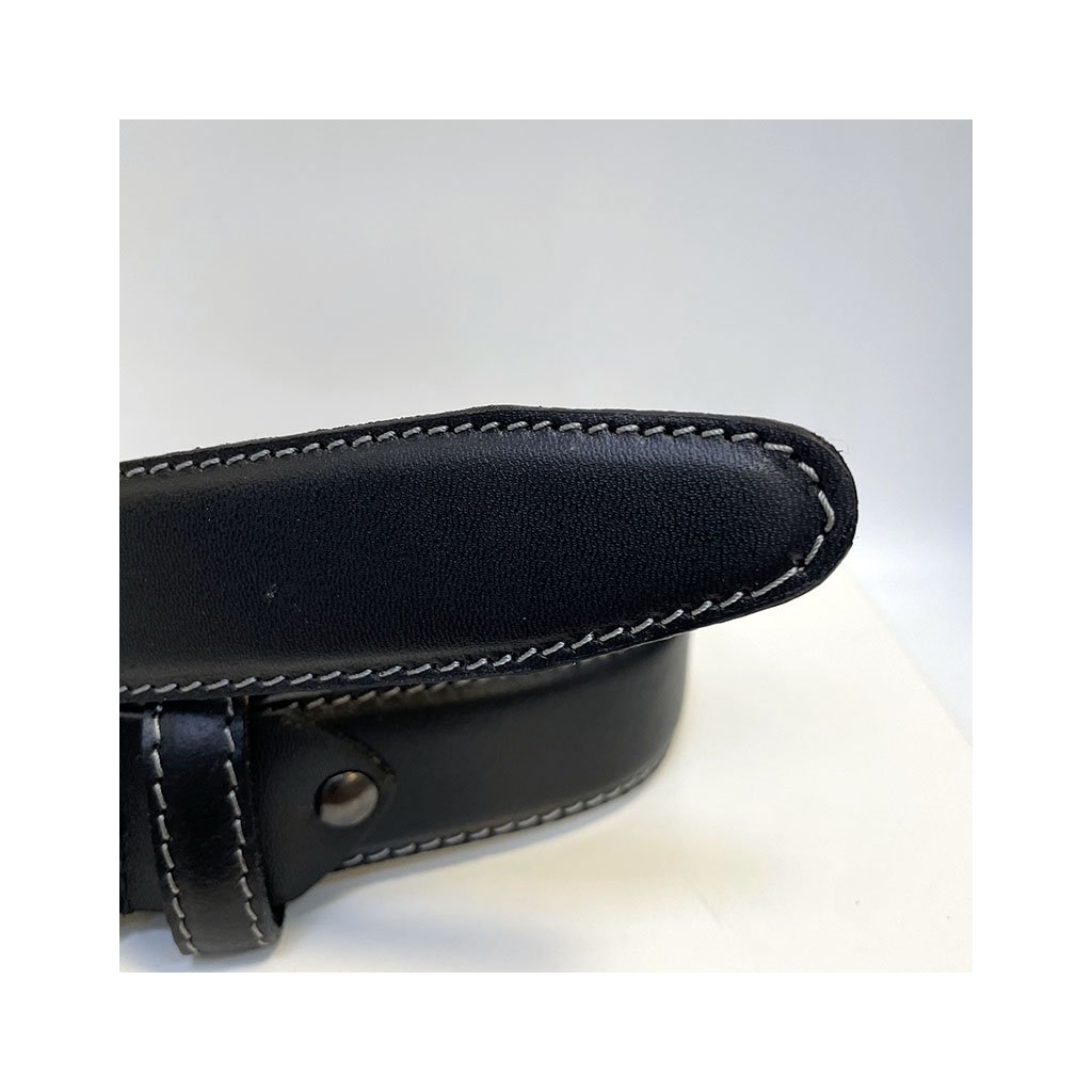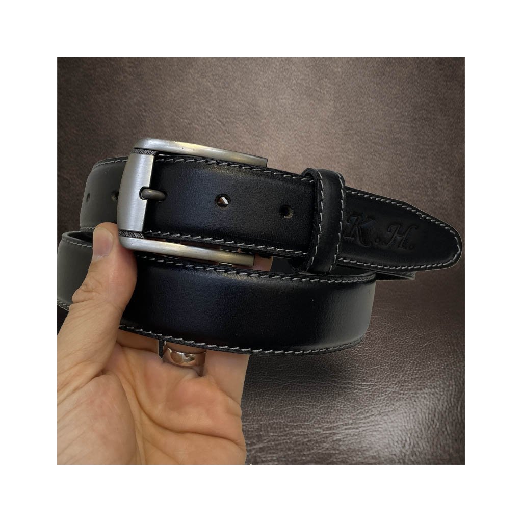 Pánský prošitý černý kožený pásek DEUTSCHLAND Leather s monogramem (ražba) lze zkátit