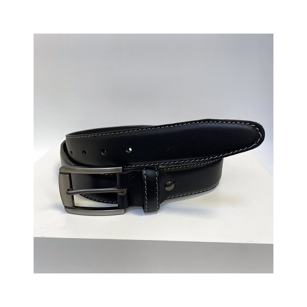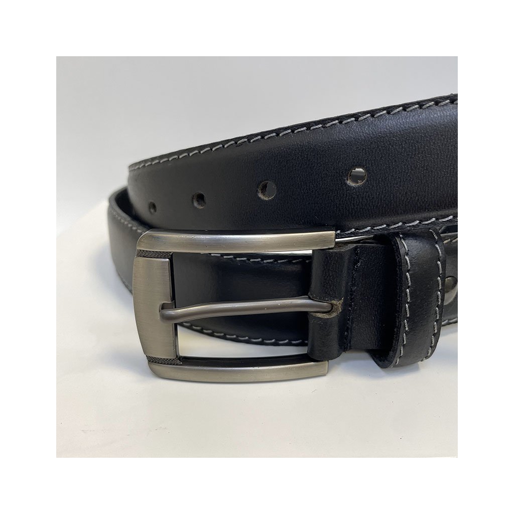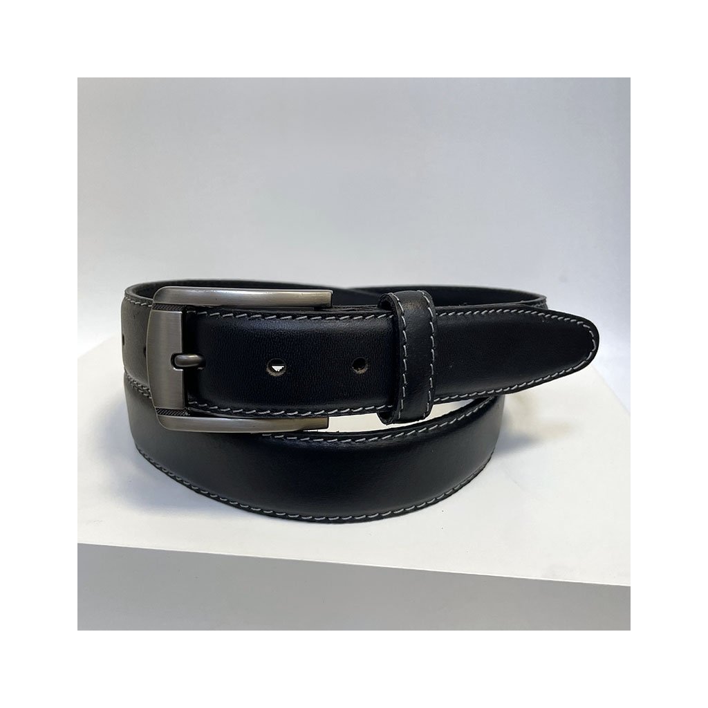Pánský prošitý černý kožený pásek DEUTSCHLAND Leather s monogramem (ražba) lze zkátit