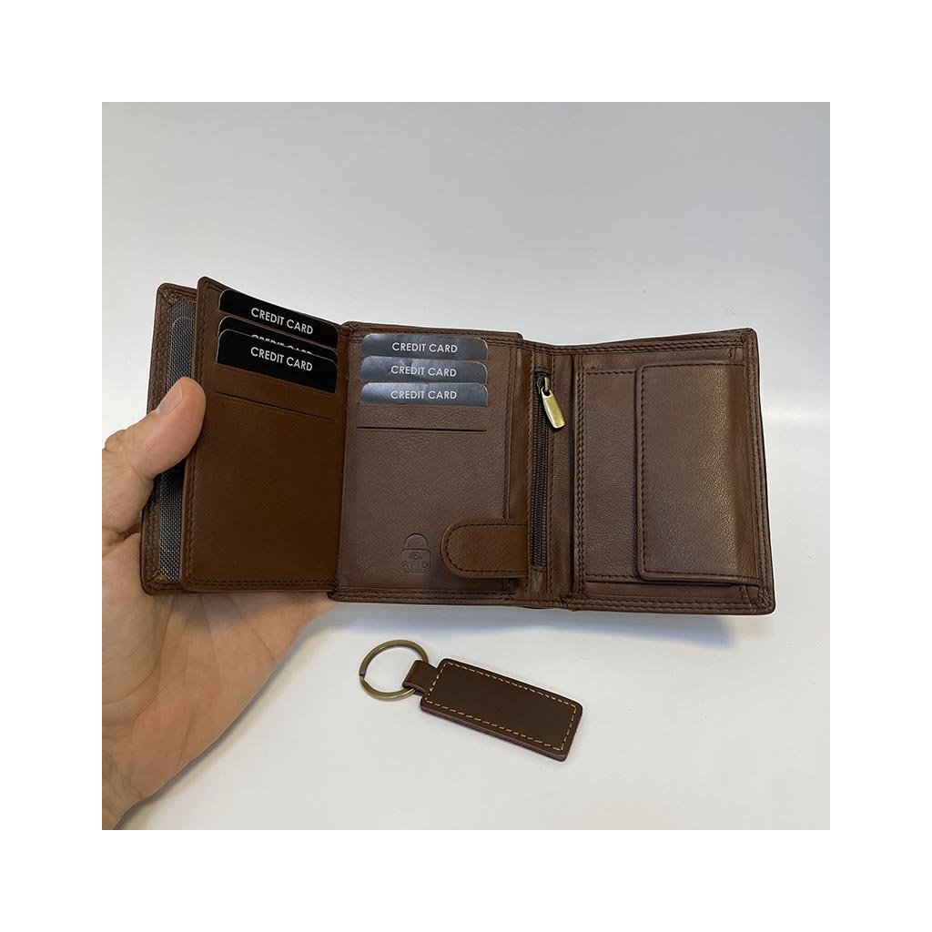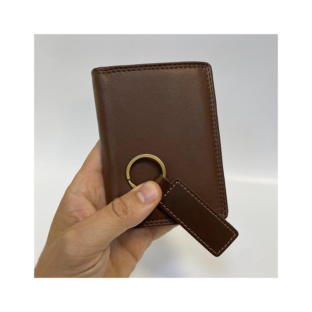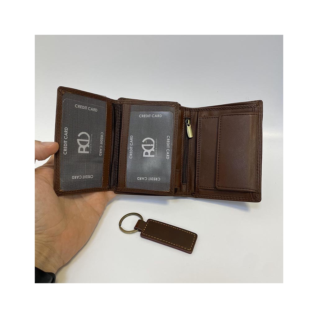 Stylový pánský kožený set spojuje elegantní peněženku na výšku bez zapínání a praktickou klíčenku – oboje z prvotřídní pravé hovězí kůže v nádherném hnědém odstínu. Každý kus může nést váš monogram, osobní text, věnování nebo dokonce vlastní fotografii díky preciznímu laserovému gravírování.