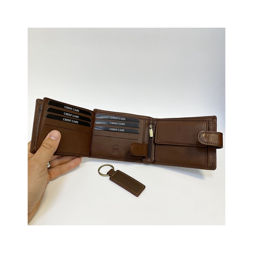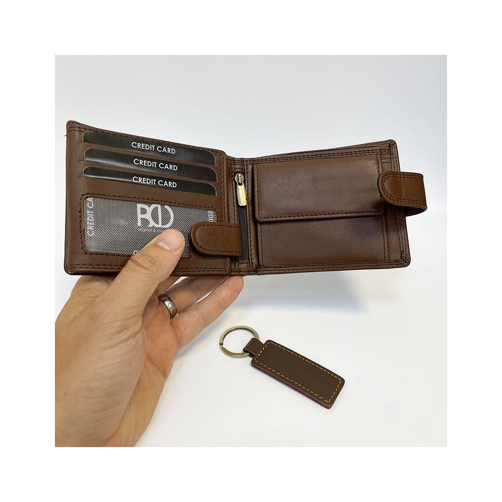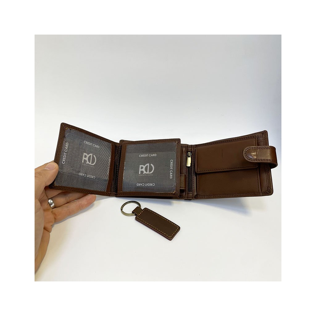 Tento luxusní kožený set pro muže v tmavě hnědém provedení kombinuje praktickou peněženku se zapínáním na výšku a elegantní koženou klíčenku. Výjimečný komplet, který potěší jako osobní dárek i jako reprezentativní doplněk do každodenní výbavy.