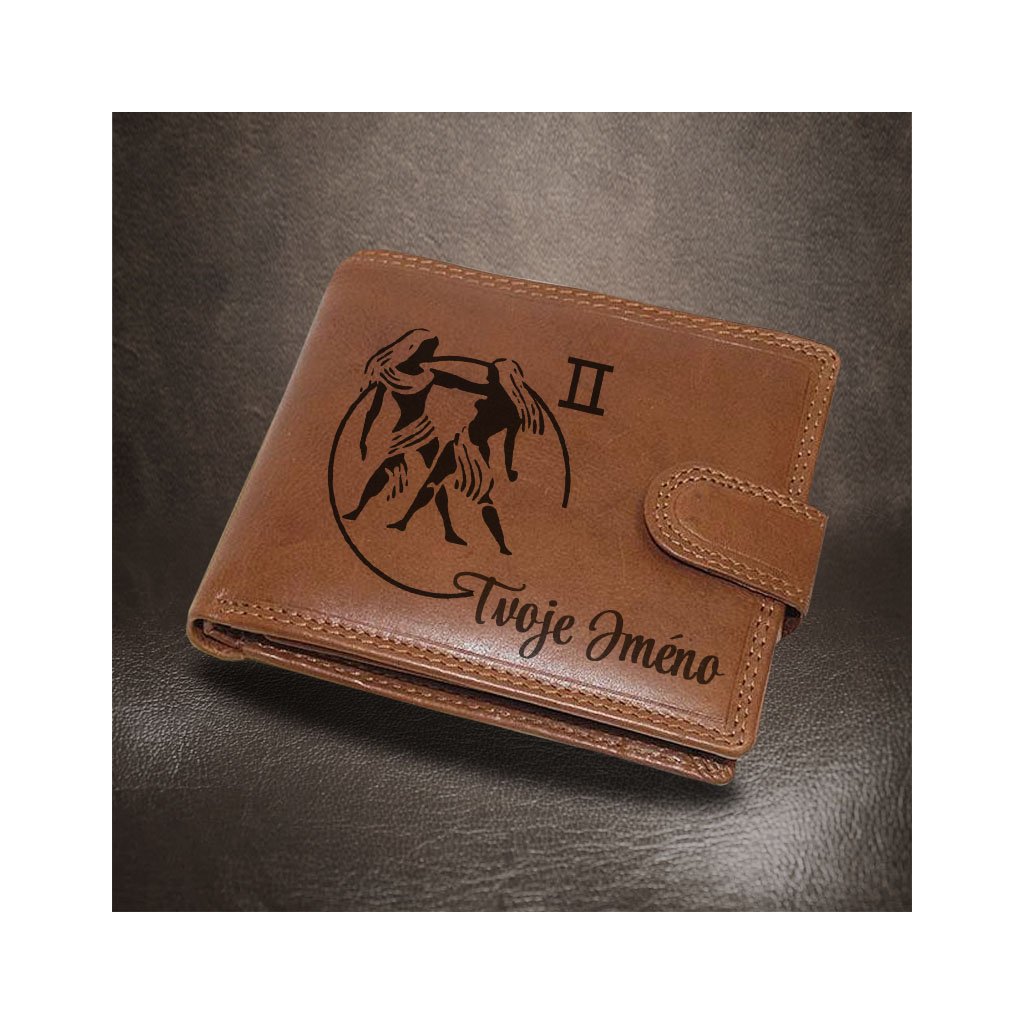 Peněženka Blíženci zvěrokruh (22. 5. – 21. 6.) a vlastní jméno, kvalitní hnědá kůže + prémiové dárkové balení BE Original