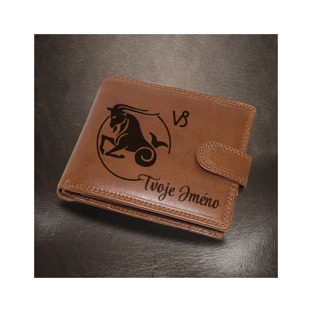 Peněženka Kozoroh zvěrokruh (22. 12. – 20. 1.) a vlastní jméno, kvalitní hnědá kůže + prémiové dárkové balení BE Original