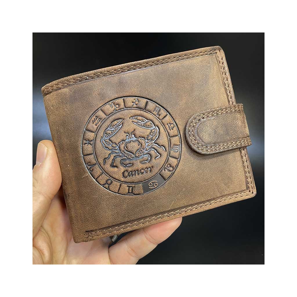 Nádherná kožená peněženka se znamením zvěrokruhu RAK (horká ražba), navíc lze dokoupit jméno, text laserem