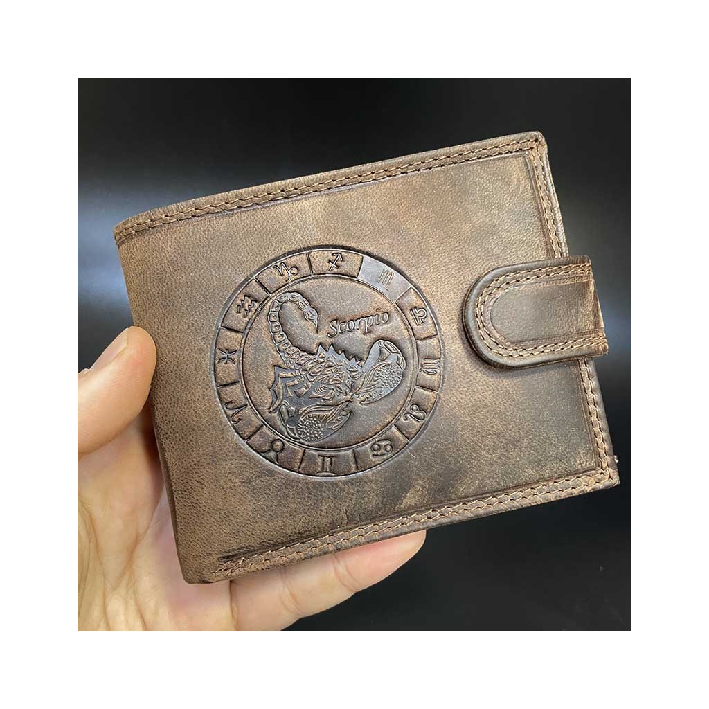 Nádherná kožená peněženka se znamením zvěrokruhu ŠTÍR (horká ražba), navíc lze dokoupit jméno, text laserem