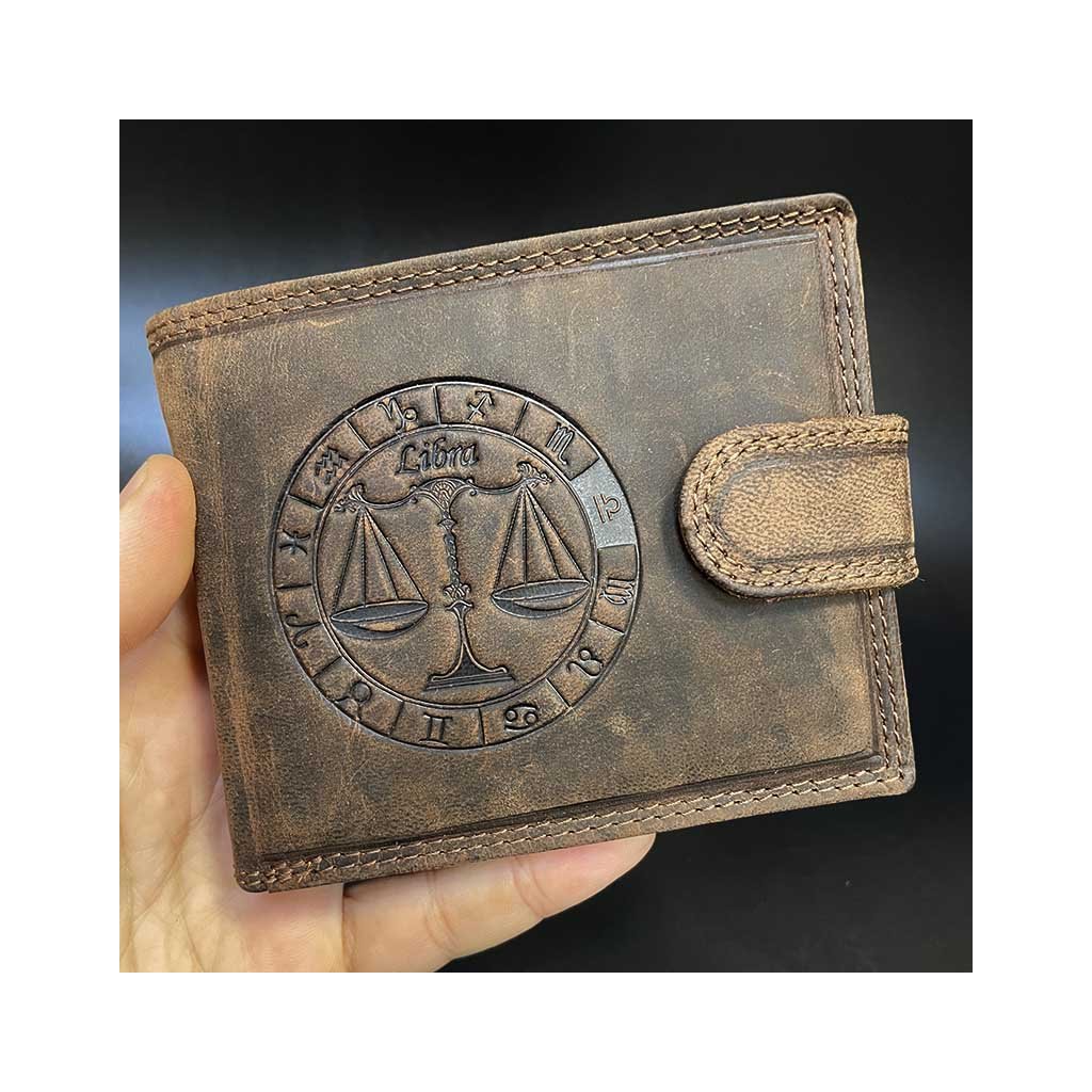 Nádherná kožená peněženka se znamením zvěrokruhu VÁHY (horká ražba), navíc lze dokoupit jméno, text laserem