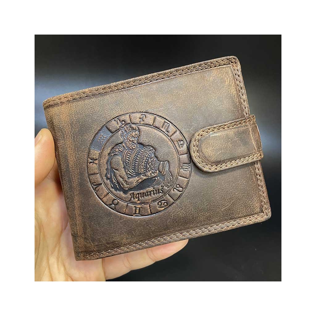 Nádherná kožená peněženka se znamením zvěrokruhu VODNÁŘ (horká ražba), navíc lze dokoupit jméno, text laserem