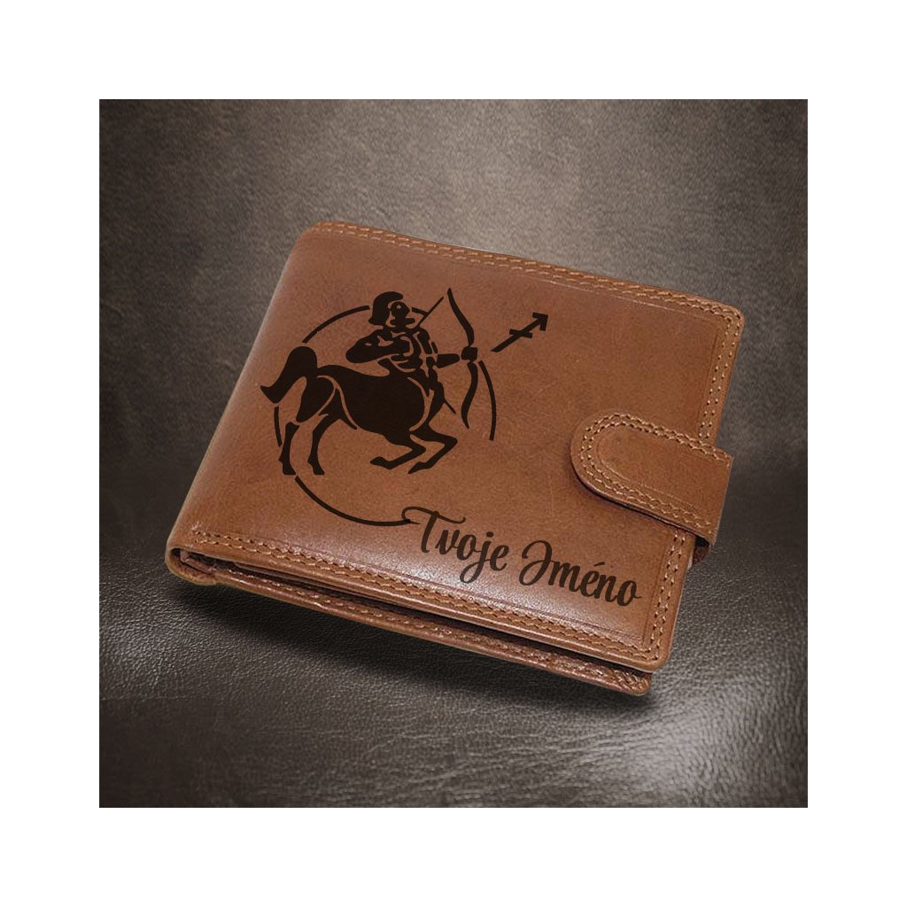 Peněženka Střelec zvěrokruh (23. 11. – 21. 12.) a vlastní jméno, kvalitní hnědá kůže + prémiové dárkové balení BE Original