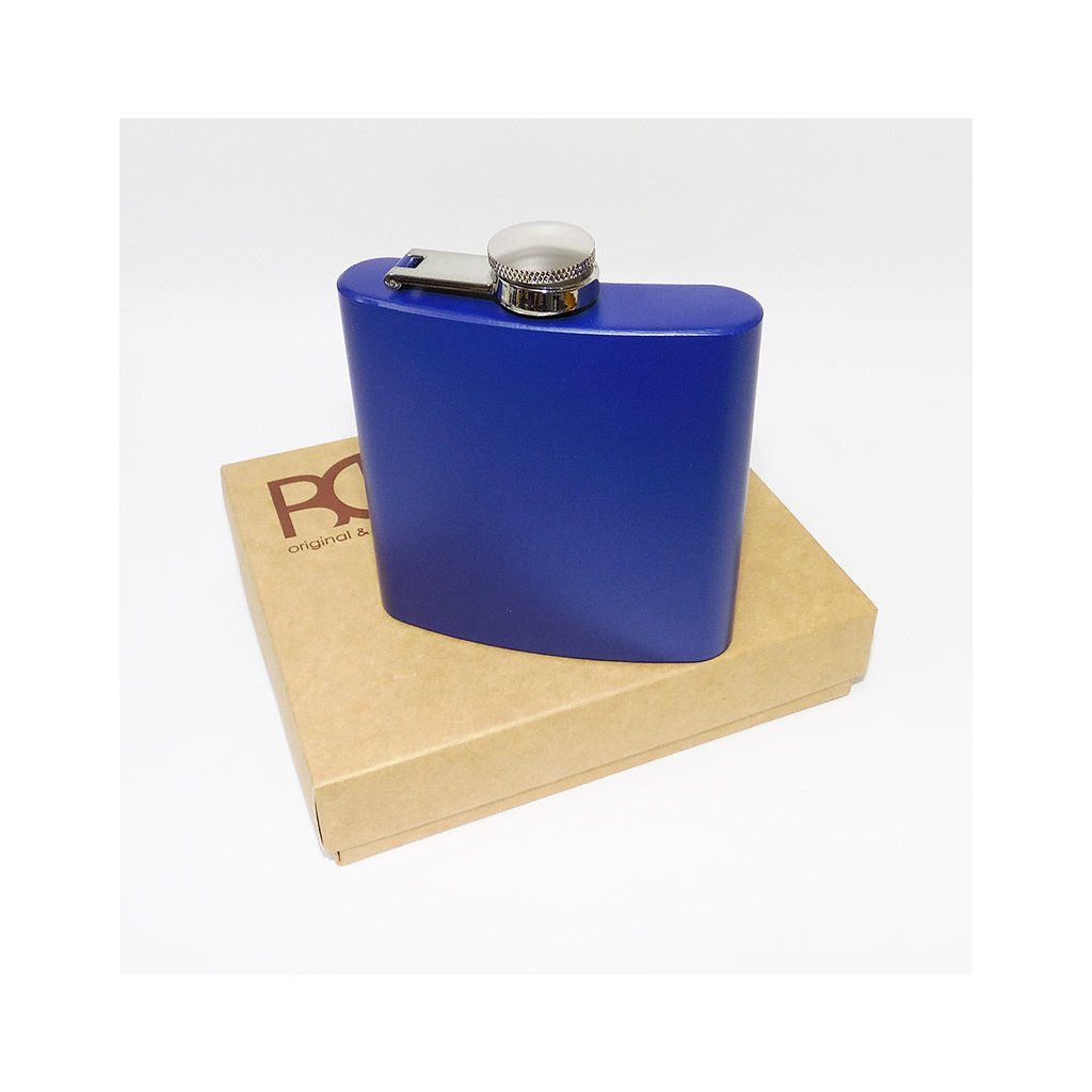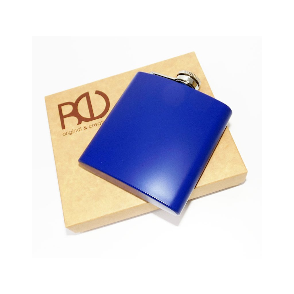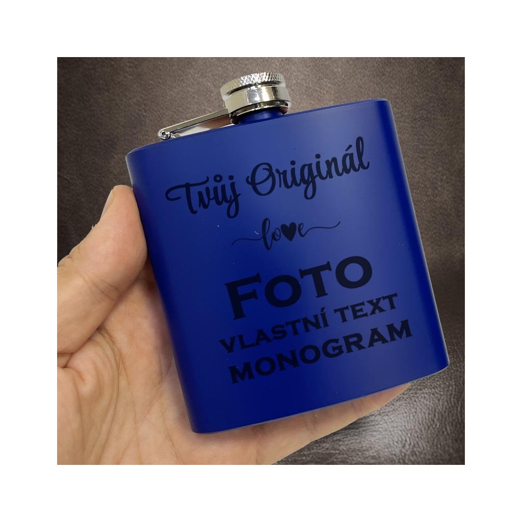 Placatka modrá 180ml z nerezu BEORIGINAL s vlastním monogramem, textem nebo fotkou + prémiové dárkové balení BE Original