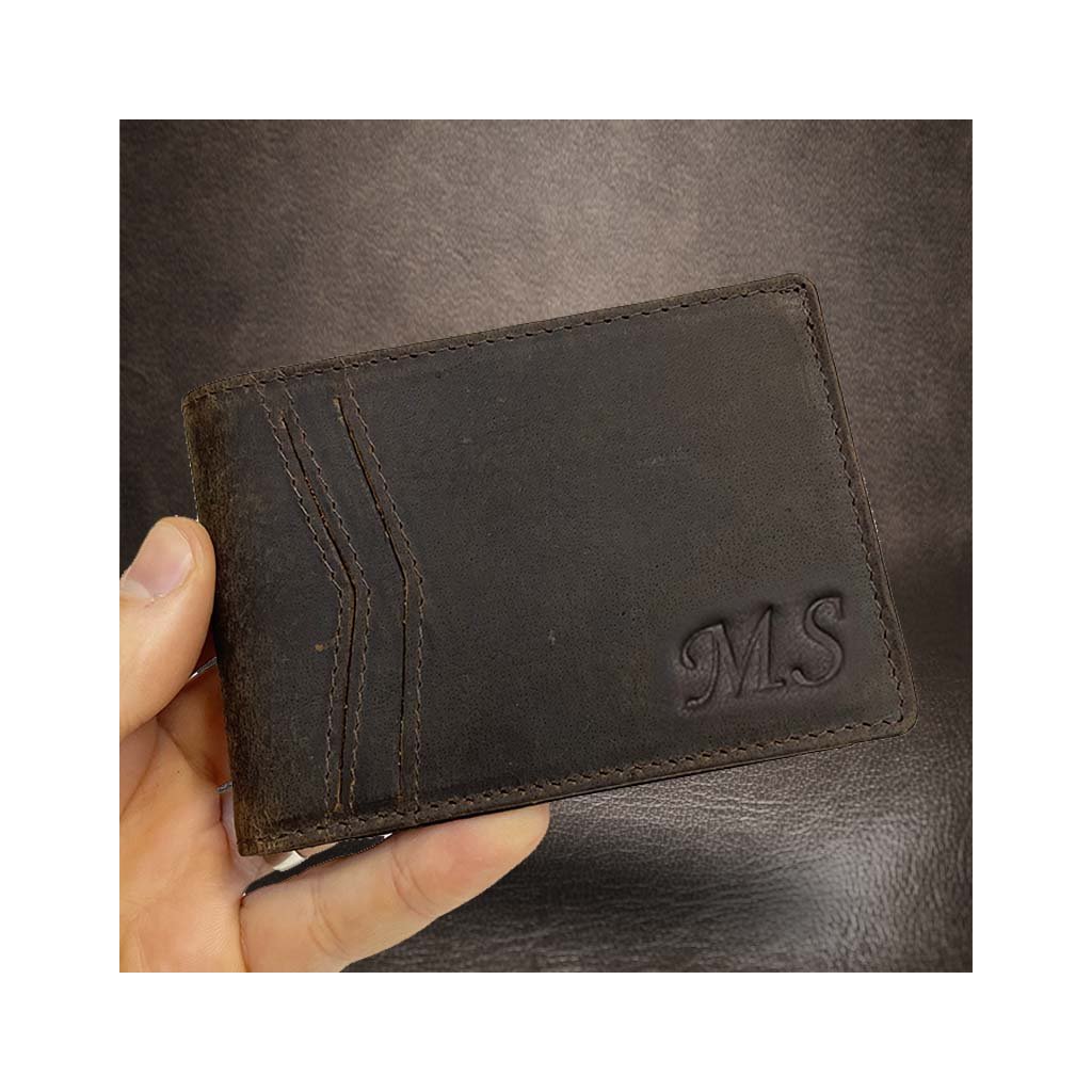 Kompaktní SLIM peněženka z kvalitní tmavě hnědé kůže ROYAL Leather, kterou si můžete nechat originálně personalizovat monogramem, textem nebo fotkou.