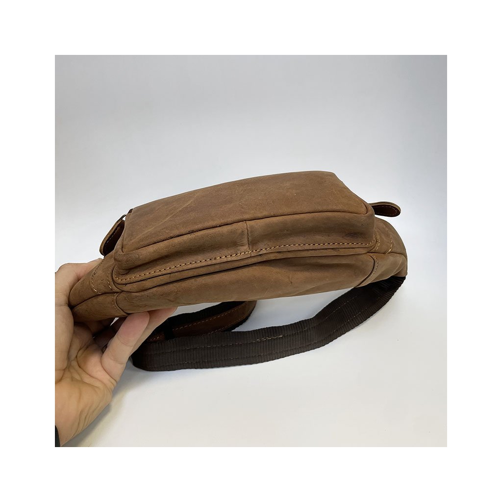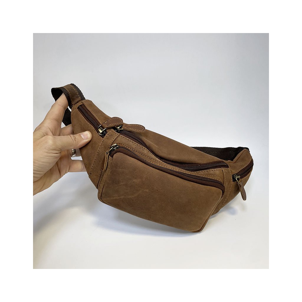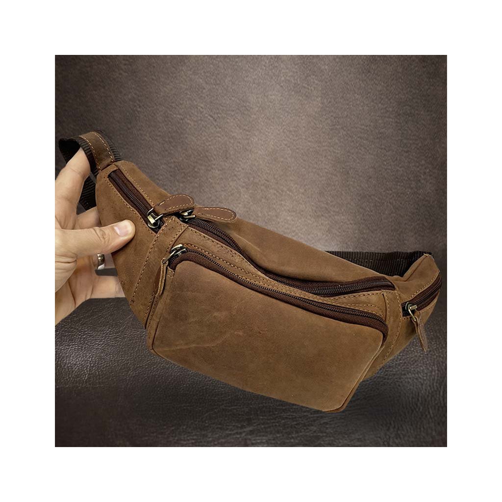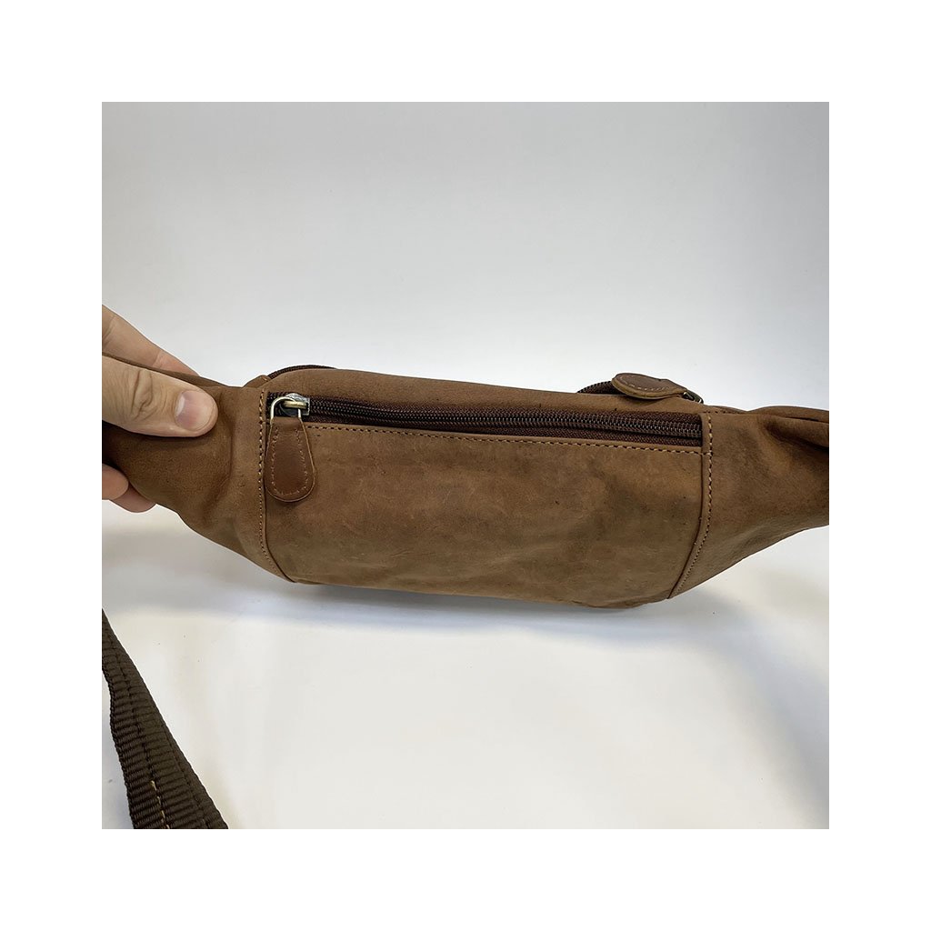 Prémiová kvalita, hnědá taška ledvinka z broušené kůže
