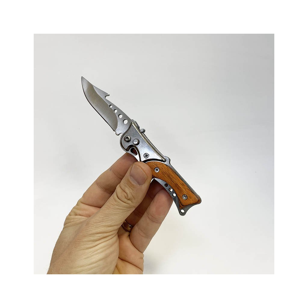 Elegantní vyklápěcí nůž o délce 22 cm (otevřený) s kvalitní dřevěnou rukojetí. Možnost gravírování vlastního textu nebo monogramu. Ideální jako originální dárek.