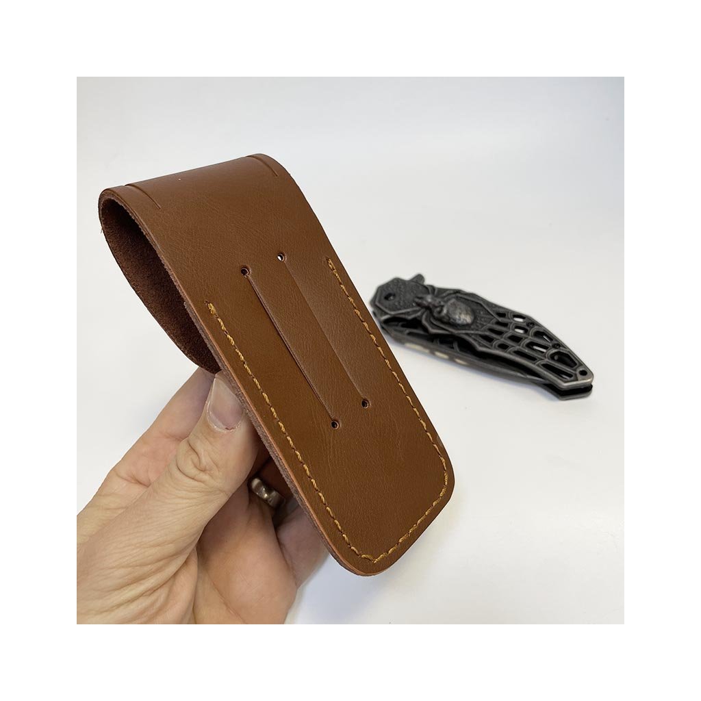 Elegantní vyklápěcí nůž s délkou 19,5 cm při otevření, doplněný koženým pouzdrem. Možnost vlastního gravírování na pouzdro – motiv, text nebo monogram. Originální dárek na míru.