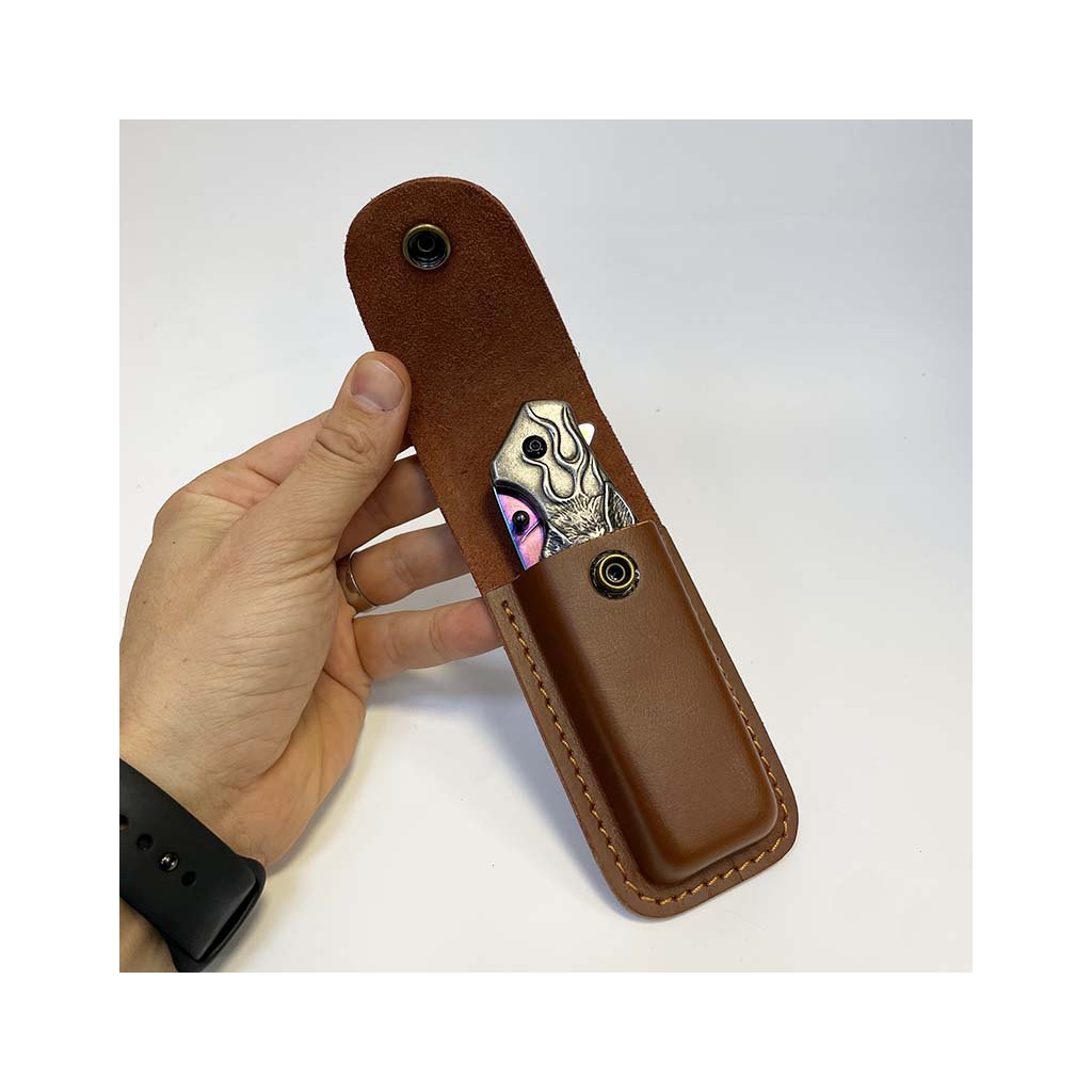 Elegantní vyklápěcí nůž s reliéfním motivem hada a kvalitním koženým pouzdrem. Přidejte vlastní text nebo monogram a vytvořte unikátní dárek.