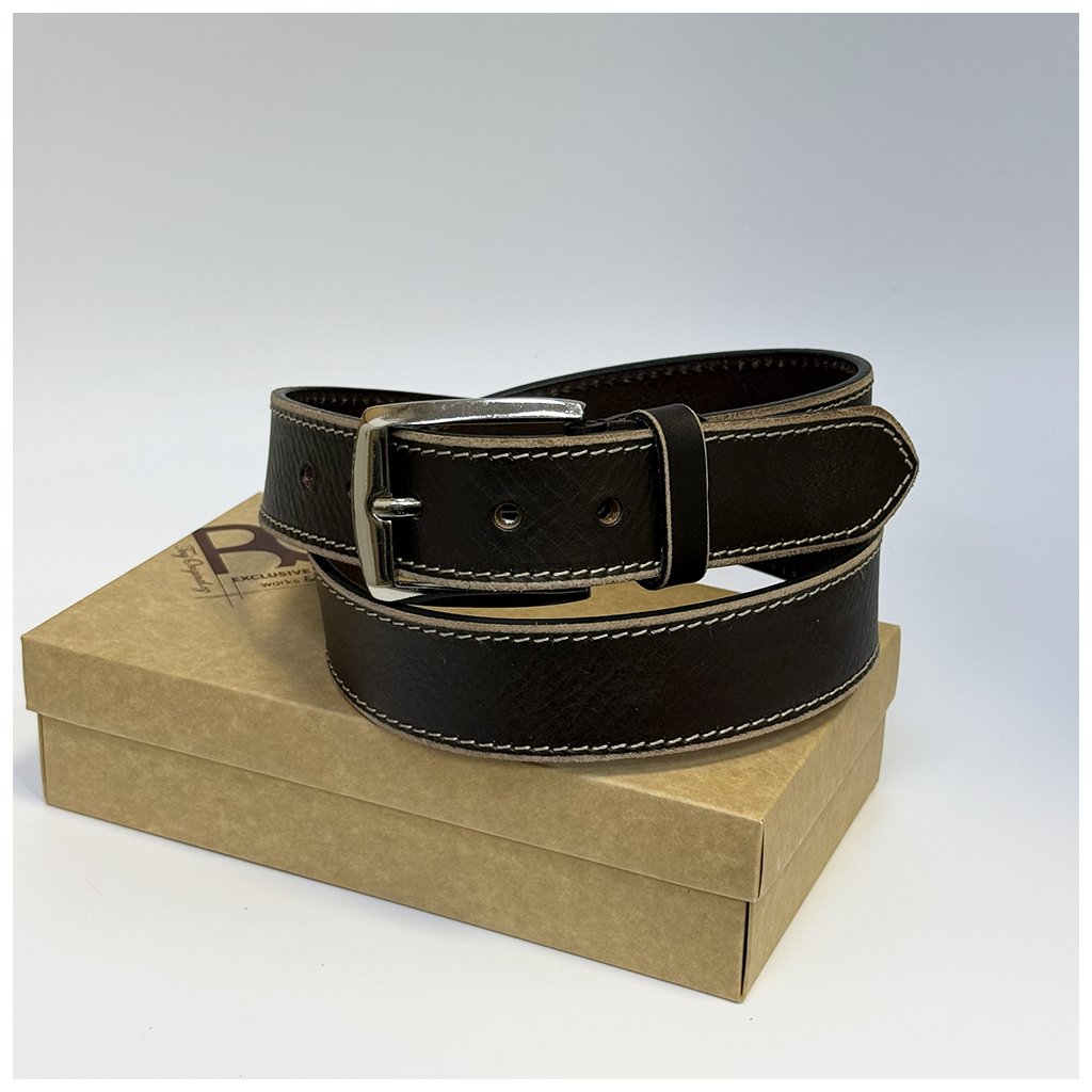 Tento tmavě hnědý prošívaný prémiový pánský pásek z pravé kůže přináší klasický styl v moderním pojetí. S možností ražby monogramu dle vašeho přání se z běžného doplňku stává něco víc – vlastní podpis v každodenním outfitu.