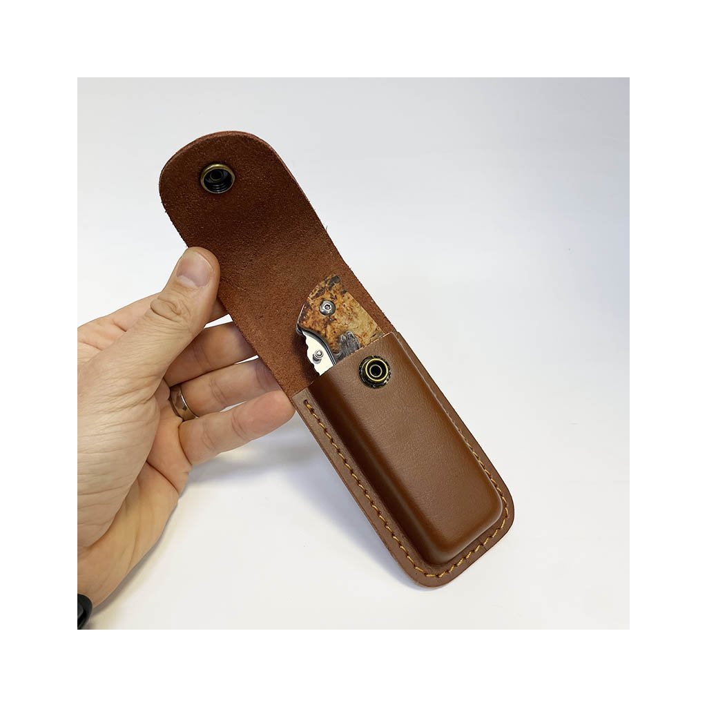 Prémiový vyklápěcí nůž s reliéfem pavouka a elegantním koženým pouzdrem. Díky osobnímu gravírování se stává originálním dárkem nebo sběratelským kouskem.