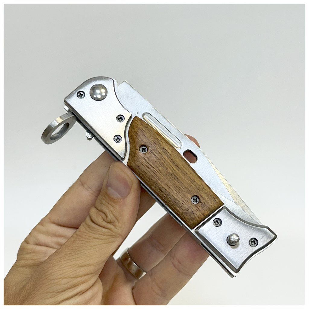 Elegantní vyklápěcí nůž o délce 22 cm (otevřený) s kvalitní dřevěnou rukojetí. Možnost gravírování vlastního textu nebo monogramu. Ideální jako originální dárek.