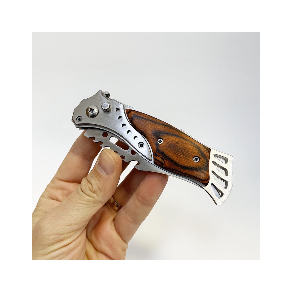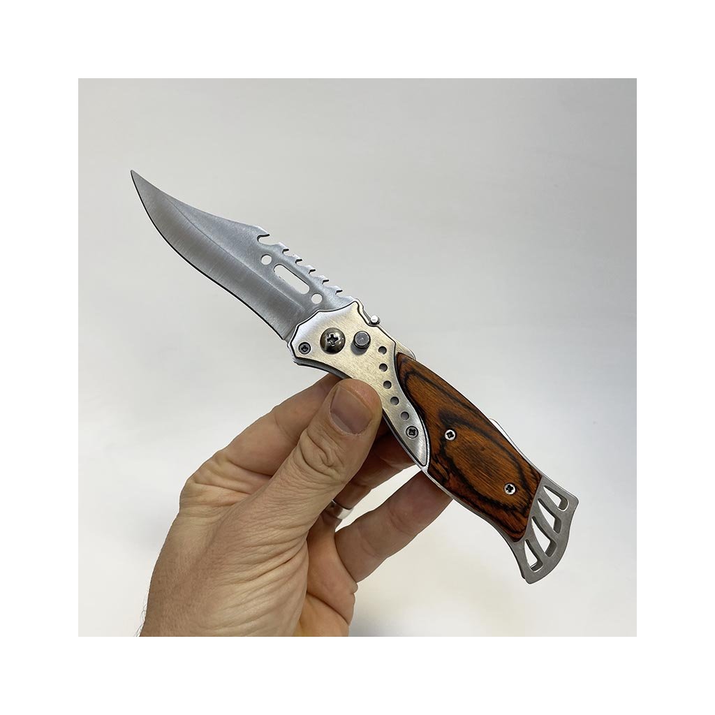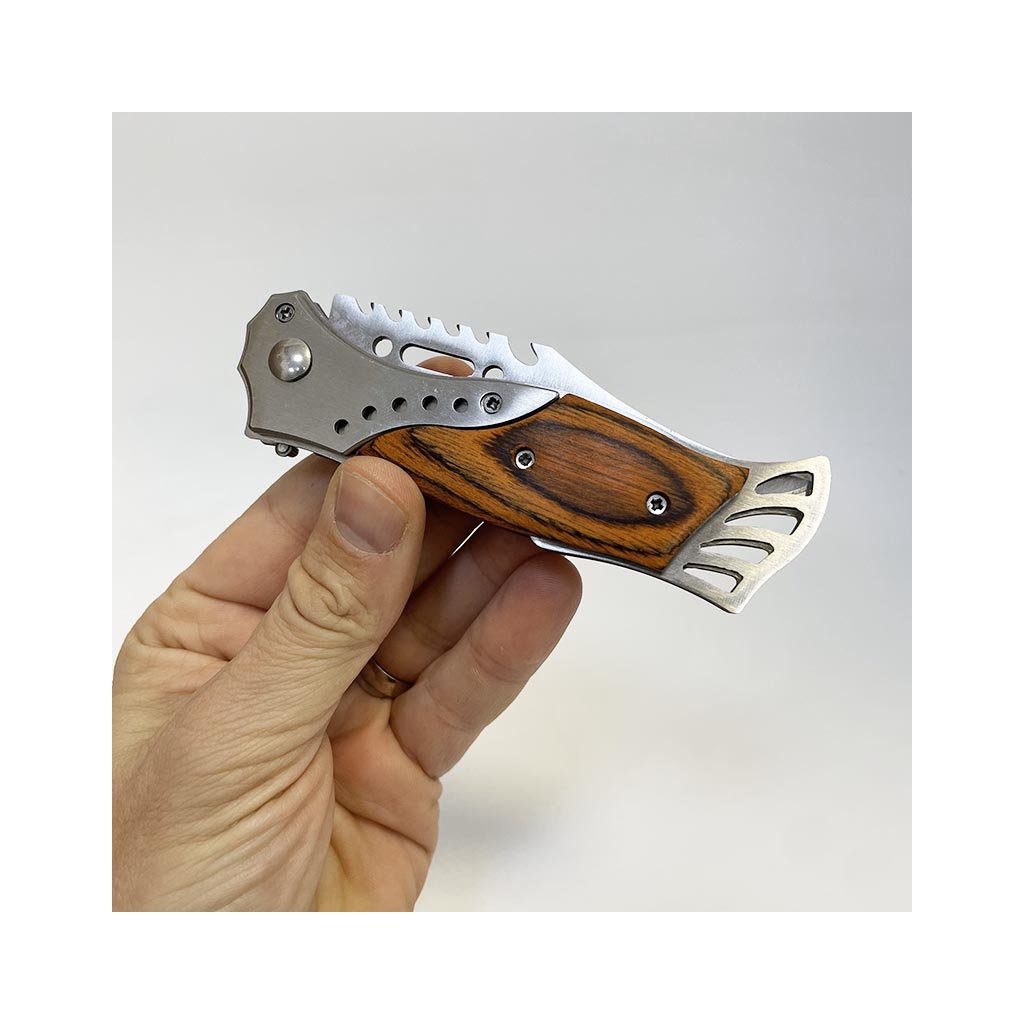 Elegantní vyklápěcí nůž o délce 22 cm (otevřený) s kvalitní dřevěnou rukojetí. Možnost gravírování vlastního textu nebo monogramu. Ideální jako originální dárek.