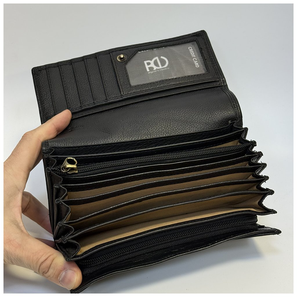 Černá kožená kasírka BELLUGIO Leather s možností ražby monogramu a laserového gravírování. Luxusní a odolná peněženka z pravé kůže pro profesionály v oboru.